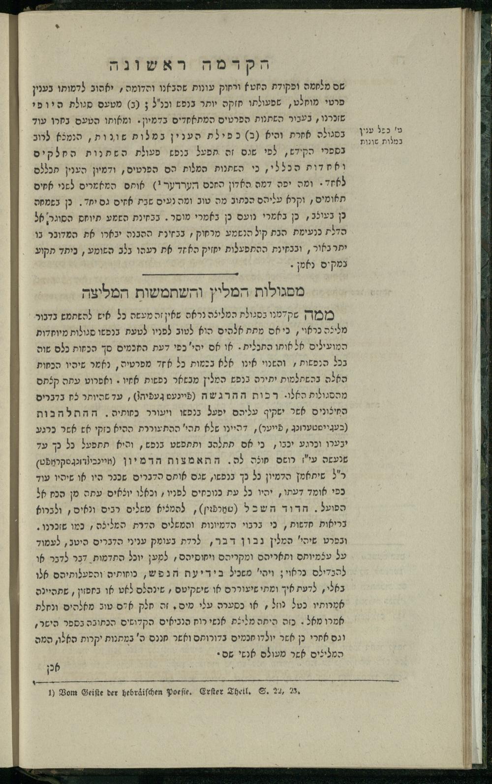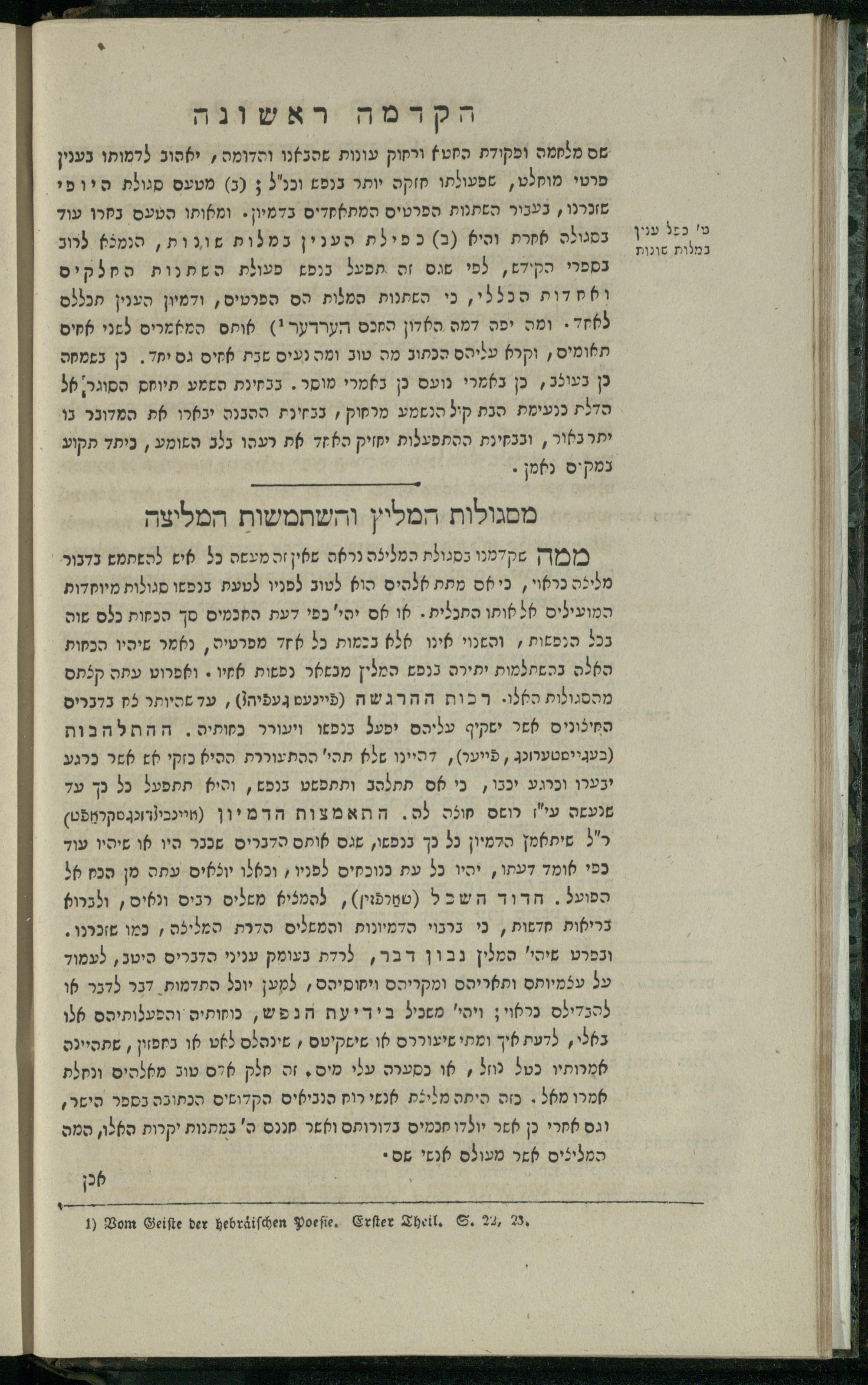 14 (1835) Sefer Tehilim : ʿim Perush Rashi ṿe-targum Ashkenazi me-et Rabenu Mosheh ben Menaḥem n.ʿE., u-veʾur me-et ha-ḥakham ha-mefursam R. Yoʾel Bril asher ḳara be-shem Zemirot Yiśraʾel, ṿe-nilṿeh elaṿ ha-Maʿamar me-et ha-ḥakham ha-medaḳdeḳ mo.h. Ṿolf Meʾir (moreh lashon ʿIvri be-vet ḥinukh ha-normali asher be-Prag), u-ve-tokho nikhlal haʿtaḳah u-veʾur le-khol milot be-laʿaz ha-nimtsaʾot be-Fe. Rashi z.l. / me-et ha-madpis Mosheh ha-Leṿi Landa14 (1835) ספר תהלים / עם פירוש רש״י ותרגום אשכנזי מאת רבינו משה בן מנחם נ״ע, ובאור מאת החכם המפורסם ר' יואל ברי״ל אשר קרא בשם זמירות ישראל, ונלוה אליו המעמר מאת החכם המדקדק מו״ה וואלף מאיר (מורה לשון עברי בבית חנוך הנארמאלי אשר בפראג), ובתוכו נכלל העתקה ובאור לכל מלות בלע״ז הנמצאות בפירש״י ז״ל מאת המדפיס משה הלוי לנדא