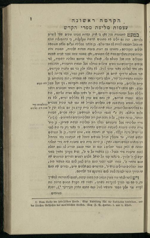 14 (1835) Sefer Tehilim : ʿim Perush Rashi ṿe-targum Ashkenazi me-et Rabenu Mosheh ben Menaḥem n.ʿE., u-veʾur me-et ha-ḥakham ha-mefursam R. Yoʾel Bril asher ḳara be-shem Zemirot Yiśraʾel, ṿe-nilṿeh elaṿ ha-Maʿamar me-et ha-ḥakham ha-medaḳdeḳ mo.h. Ṿolf Meʾir (moreh lashon ʿIvri be-vet ḥinukh ha-normali asher be-Prag), u-ve-tokho nikhlal haʿtaḳah u-veʾur le-khol milot be-laʿaz ha-nimtsaʾot be-Fe. Rashi z.l. / me-et ha-madpis Mosheh ha-Leṿi Landa14 (1835) ספר תהלים / עם פירוש רש״י ותרגום אשכנזי מאת רבינו משה בן מנחם נ״ע, ובאור מאת החכם המפורסם ר' יואל ברי״ל אשר קרא בשם זמירות ישראל, ונלוה אליו המעמר מאת החכם המדקדק מו״ה וואלף מאיר (מורה לשון עברי בבית חנוך הנארמאלי אשר בפראג), ובתוכו נכלל העתקה ובאור לכל מלות בלע״ז הנמצאות בפירש״י ז״ל מאת המדפיס משה הלוי לנדא