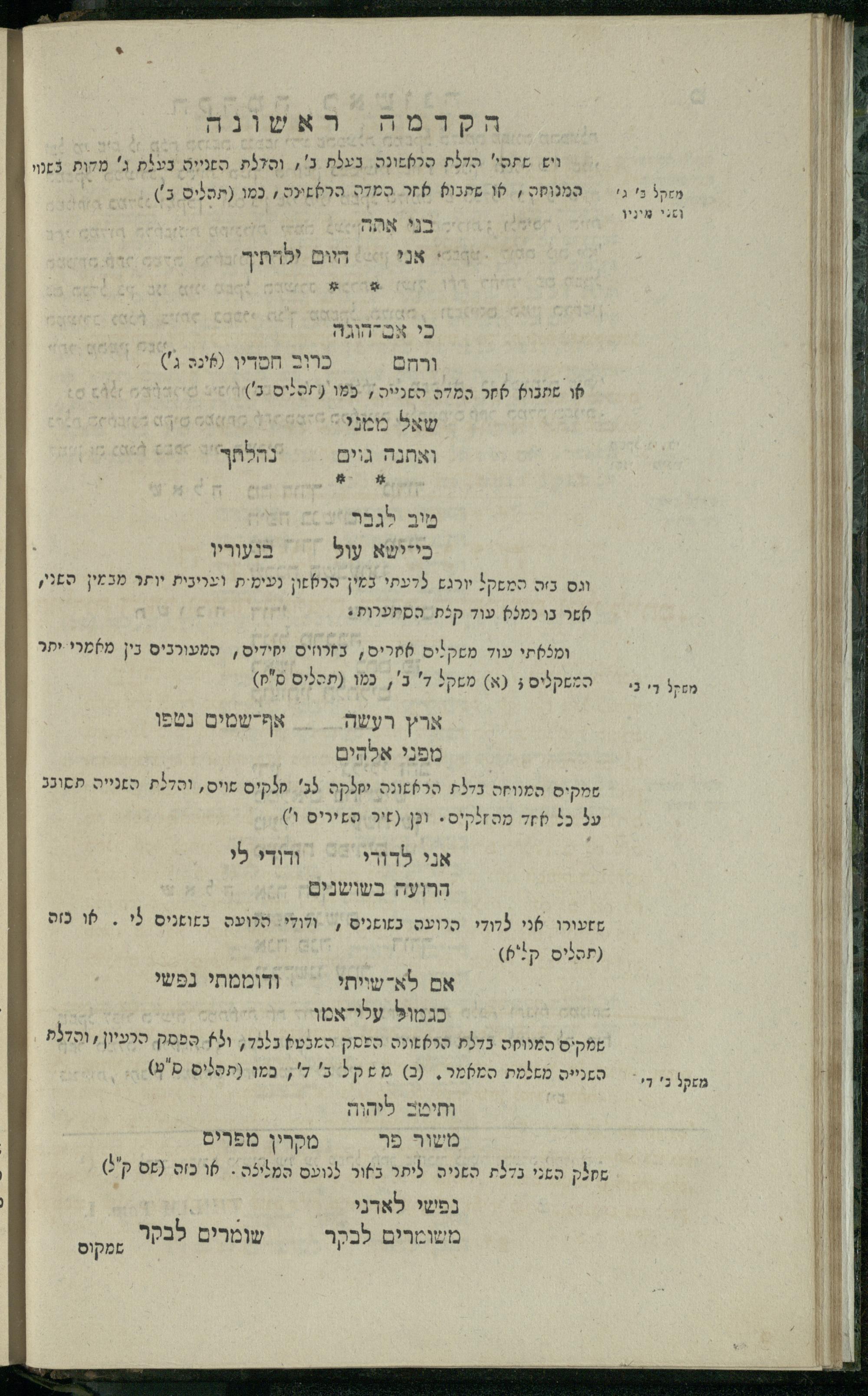 14 (1835) Sefer Tehilim : ʿim Perush Rashi ṿe-targum Ashkenazi me-et Rabenu Mosheh ben Menaḥem n.ʿE., u-veʾur me-et ha-ḥakham ha-mefursam R. Yoʾel Bril asher ḳara be-shem Zemirot Yiśraʾel, ṿe-nilṿeh elaṿ ha-Maʿamar me-et ha-ḥakham ha-medaḳdeḳ mo.h. Ṿolf Meʾir (moreh lashon ʿIvri be-vet ḥinukh ha-normali asher be-Prag), u-ve-tokho nikhlal haʿtaḳah u-veʾur le-khol milot be-laʿaz ha-nimtsaʾot be-Fe. Rashi z.l. / me-et ha-madpis Mosheh ha-Leṿi Landa14 (1835) ספר תהלים / עם פירוש רש״י ותרגום אשכנזי מאת רבינו משה בן מנחם נ״ע, ובאור מאת החכם המפורסם ר' יואל ברי״ל אשר קרא בשם זמירות ישראל, ונלוה אליו המעמר מאת החכם המדקדק מו״ה וואלף מאיר (מורה לשון עברי בבית חנוך הנארמאלי אשר בפראג), ובתוכו נכלל העתקה ובאור לכל מלות בלע״ז הנמצאות בפירש״י ז״ל מאת המדפיס משה הלוי לנדא