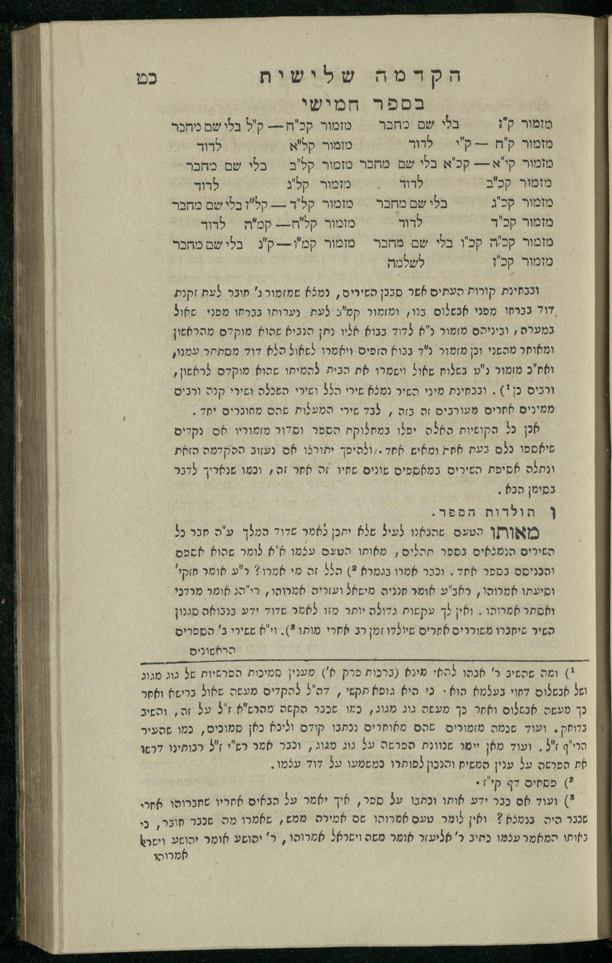 14 (1835) Sefer Tehilim : ʿim Perush Rashi ṿe-targum Ashkenazi me-et Rabenu Mosheh ben Menaḥem n.ʿE., u-veʾur me-et ha-ḥakham ha-mefursam R. Yoʾel Bril asher ḳara be-shem Zemirot Yiśraʾel, ṿe-nilṿeh elaṿ ha-Maʿamar me-et ha-ḥakham ha-medaḳdeḳ mo.h. Ṿolf Meʾir (moreh lashon ʿIvri be-vet ḥinukh ha-normali asher be-Prag), u-ve-tokho nikhlal haʿtaḳah u-veʾur le-khol milot be-laʿaz ha-nimtsaʾot be-Fe. Rashi z.l. / me-et ha-madpis Mosheh ha-Leṿi Landa14 (1835) ספר תהלים / עם פירוש רש״י ותרגום אשכנזי מאת רבינו משה בן מנחם נ״ע, ובאור מאת החכם המפורסם ר' יואל ברי״ל אשר קרא בשם זמירות ישראל, ונלוה אליו המעמר מאת החכם המדקדק מו״ה וואלף מאיר (מורה לשון עברי בבית חנוך הנארמאלי אשר בפראג), ובתוכו נכלל העתקה ובאור לכל מלות בלע״ז הנמצאות בפירש״י ז״ל מאת המדפיס משה הלוי לנדא
