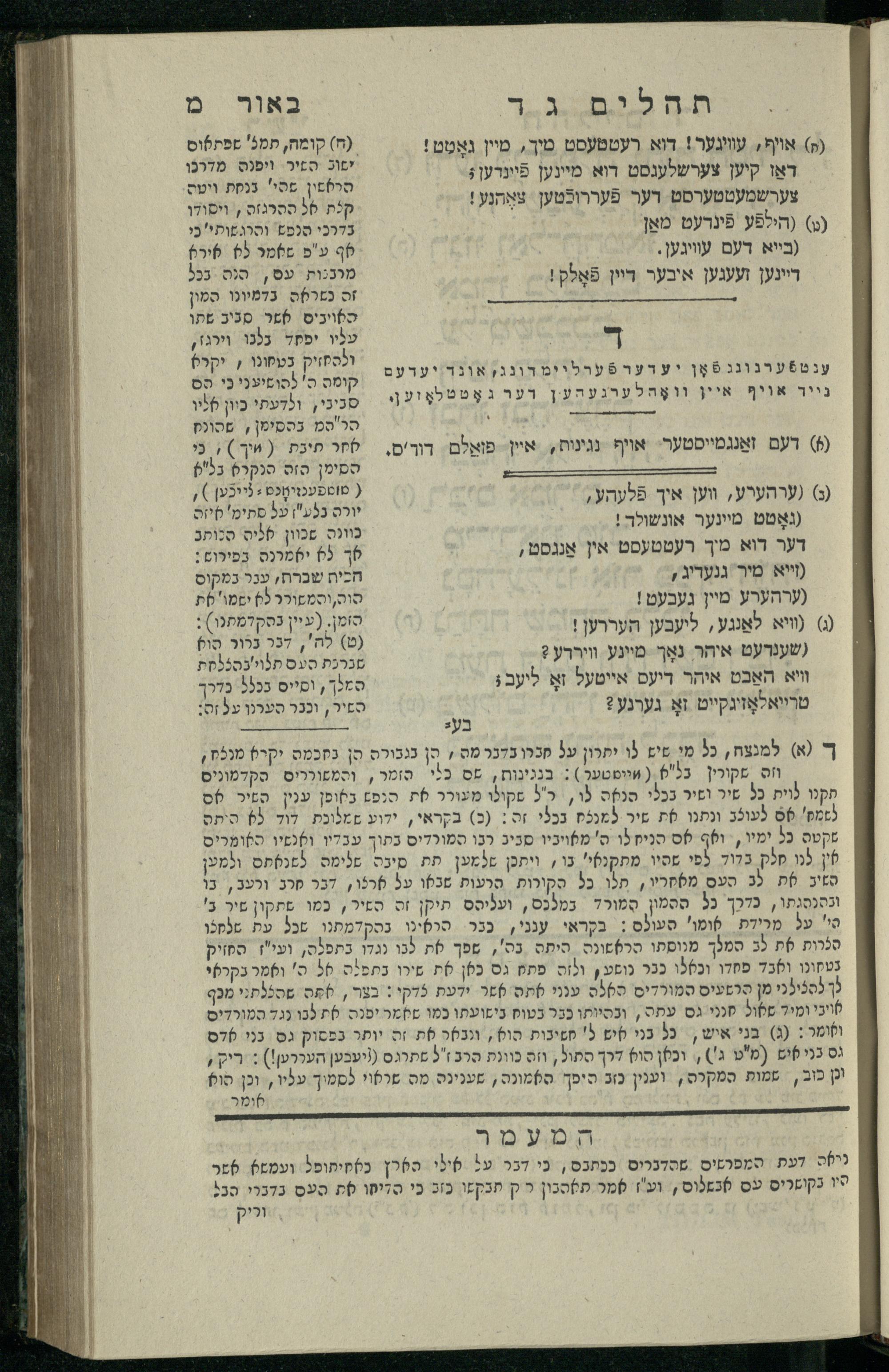 14 (1835) Sefer Tehilim : ʿim Perush Rashi ṿe-targum Ashkenazi me-et Rabenu Mosheh ben Menaḥem n.ʿE., u-veʾur me-et ha-ḥakham ha-mefursam R. Yoʾel Bril asher ḳara be-shem Zemirot Yiśraʾel, ṿe-nilṿeh elaṿ ha-Maʿamar me-et ha-ḥakham ha-medaḳdeḳ mo.h. Ṿolf Meʾir (moreh lashon ʿIvri be-vet ḥinukh ha-normali asher be-Prag), u-ve-tokho nikhlal haʿtaḳah u-veʾur le-khol milot be-laʿaz ha-nimtsaʾot be-Fe. Rashi z.l. / me-et ha-madpis Mosheh ha-Leṿi Landa14 (1835) ספר תהלים / עם פירוש רש״י ותרגום אשכנזי מאת רבינו משה בן מנחם נ״ע, ובאור מאת החכם המפורסם ר' יואל ברי״ל אשר קרא בשם זמירות ישראל, ונלוה אליו המעמר מאת החכם המדקדק מו״ה וואלף מאיר (מורה לשון עברי בבית חנוך הנארמאלי אשר בפראג), ובתוכו נכלל העתקה ובאור לכל מלות בלע״ז הנמצאות בפירש״י ז״ל מאת המדפיס משה הלוי לנדא