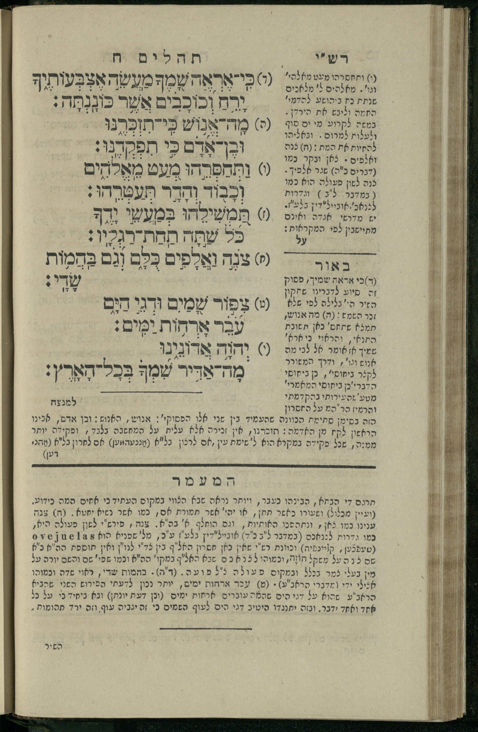 14 (1835) Sefer Tehilim : ʿim Perush Rashi ṿe-targum Ashkenazi me-et Rabenu Mosheh ben Menaḥem n.ʿE., u-veʾur me-et ha-ḥakham ha-mefursam R. Yoʾel Bril asher ḳara be-shem Zemirot Yiśraʾel, ṿe-nilṿeh elaṿ ha-Maʿamar me-et ha-ḥakham ha-medaḳdeḳ mo.h. Ṿolf Meʾir (moreh lashon ʿIvri be-vet ḥinukh ha-normali asher be-Prag), u-ve-tokho nikhlal haʿtaḳah u-veʾur le-khol milot be-laʿaz ha-nimtsaʾot be-Fe. Rashi z.l. / me-et ha-madpis Mosheh ha-Leṿi Landa14 (1835) ספר תהלים / עם פירוש רש״י ותרגום אשכנזי מאת רבינו משה בן מנחם נ״ע, ובאור מאת החכם המפורסם ר' יואל ברי״ל אשר קרא בשם זמירות ישראל, ונלוה אליו המעמר מאת החכם המדקדק מו״ה וואלף מאיר (מורה לשון עברי בבית חנוך הנארמאלי אשר בפראג), ובתוכו נכלל העתקה ובאור לכל מלות בלע״ז הנמצאות בפירש״י ז״ל מאת המדפיס משה הלוי לנדא