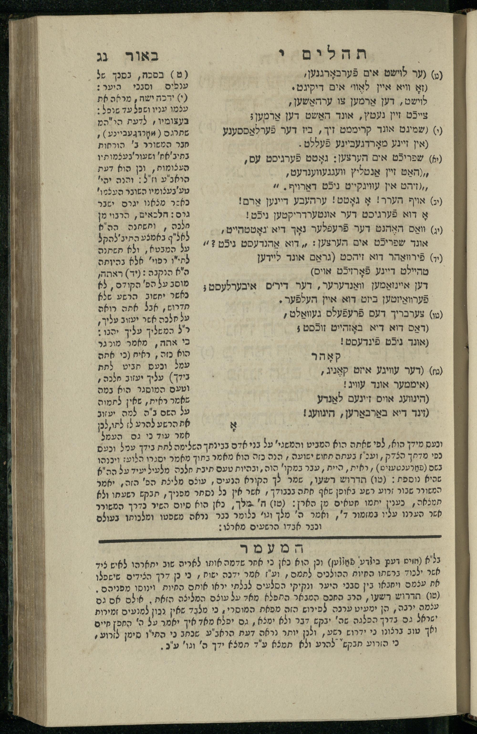14 (1835) Sefer Tehilim : ʿim Perush Rashi ṿe-targum Ashkenazi me-et Rabenu Mosheh ben Menaḥem n.ʿE., u-veʾur me-et ha-ḥakham ha-mefursam R. Yoʾel Bril asher ḳara be-shem Zemirot Yiśraʾel, ṿe-nilṿeh elaṿ ha-Maʿamar me-et ha-ḥakham ha-medaḳdeḳ mo.h. Ṿolf Meʾir (moreh lashon ʿIvri be-vet ḥinukh ha-normali asher be-Prag), u-ve-tokho nikhlal haʿtaḳah u-veʾur le-khol milot be-laʿaz ha-nimtsaʾot be-Fe. Rashi z.l. / me-et ha-madpis Mosheh ha-Leṿi Landa14 (1835) ספר תהלים / עם פירוש רש״י ותרגום אשכנזי מאת רבינו משה בן מנחם נ״ע, ובאור מאת החכם המפורסם ר' יואל ברי״ל אשר קרא בשם זמירות ישראל, ונלוה אליו המעמר מאת החכם המדקדק מו״ה וואלף מאיר (מורה לשון עברי בבית חנוך הנארמאלי אשר בפראג), ובתוכו נכלל העתקה ובאור לכל מלות בלע״ז הנמצאות בפירש״י ז״ל מאת המדפיס משה הלוי לנדא
