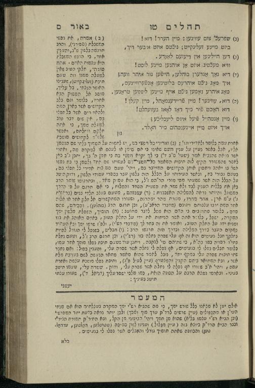 14 (1835) Sefer Tehilim : ʿim Perush Rashi ṿe-targum Ashkenazi me-et Rabenu Mosheh ben Menaḥem n.ʿE., u-veʾur me-et ha-ḥakham ha-mefursam R. Yoʾel Bril asher ḳara be-shem Zemirot Yiśraʾel, ṿe-nilṿeh elaṿ ha-Maʿamar me-et ha-ḥakham ha-medaḳdeḳ mo.h. Ṿolf Meʾir (moreh lashon ʿIvri be-vet ḥinukh ha-normali asher be-Prag), u-ve-tokho nikhlal haʿtaḳah u-veʾur le-khol milot be-laʿaz ha-nimtsaʾot be-Fe. Rashi z.l. / me-et ha-madpis Mosheh ha-Leṿi Landa14 (1835) ספר תהלים / עם פירוש רש״י ותרגום אשכנזי מאת רבינו משה בן מנחם נ״ע, ובאור מאת החכם המפורסם ר' יואל ברי״ל אשר קרא בשם זמירות ישראל, ונלוה אליו המעמר מאת החכם המדקדק מו״ה וואלף מאיר (מורה לשון עברי בבית חנוך הנארמאלי אשר בפראג), ובתוכו נכלל העתקה ובאור לכל מלות בלע״ז הנמצאות בפירש״י ז״ל מאת המדפיס משה הלוי לנדא