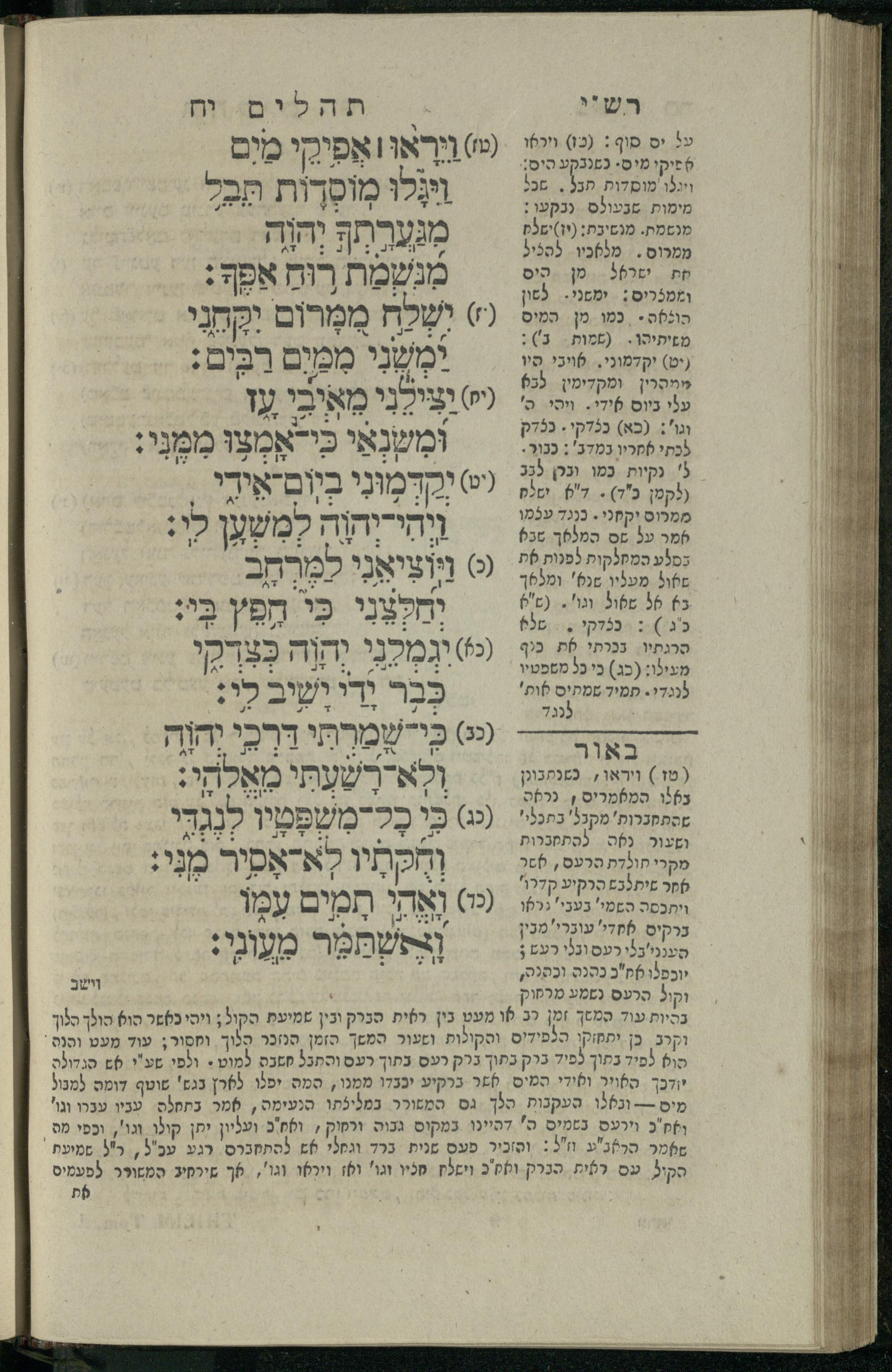 14 (1835) Sefer Tehilim : ʿim Perush Rashi ṿe-targum Ashkenazi me-et Rabenu Mosheh ben Menaḥem n.ʿE., u-veʾur me-et ha-ḥakham ha-mefursam R. Yoʾel Bril asher ḳara be-shem Zemirot Yiśraʾel, ṿe-nilṿeh elaṿ ha-Maʿamar me-et ha-ḥakham ha-medaḳdeḳ mo.h. Ṿolf Meʾir (moreh lashon ʿIvri be-vet ḥinukh ha-normali asher be-Prag), u-ve-tokho nikhlal haʿtaḳah u-veʾur le-khol milot be-laʿaz ha-nimtsaʾot be-Fe. Rashi z.l. / me-et ha-madpis Mosheh ha-Leṿi Landa14 (1835) ספר תהלים / עם פירוש רש״י ותרגום אשכנזי מאת רבינו משה בן מנחם נ״ע, ובאור מאת החכם המפורסם ר' יואל ברי״ל אשר קרא בשם זמירות ישראל, ונלוה אליו המעמר מאת החכם המדקדק מו״ה וואלף מאיר (מורה לשון עברי בבית חנוך הנארמאלי אשר בפראג), ובתוכו נכלל העתקה ובאור לכל מלות בלע״ז הנמצאות בפירש״י ז״ל מאת המדפיס משה הלוי לנדא