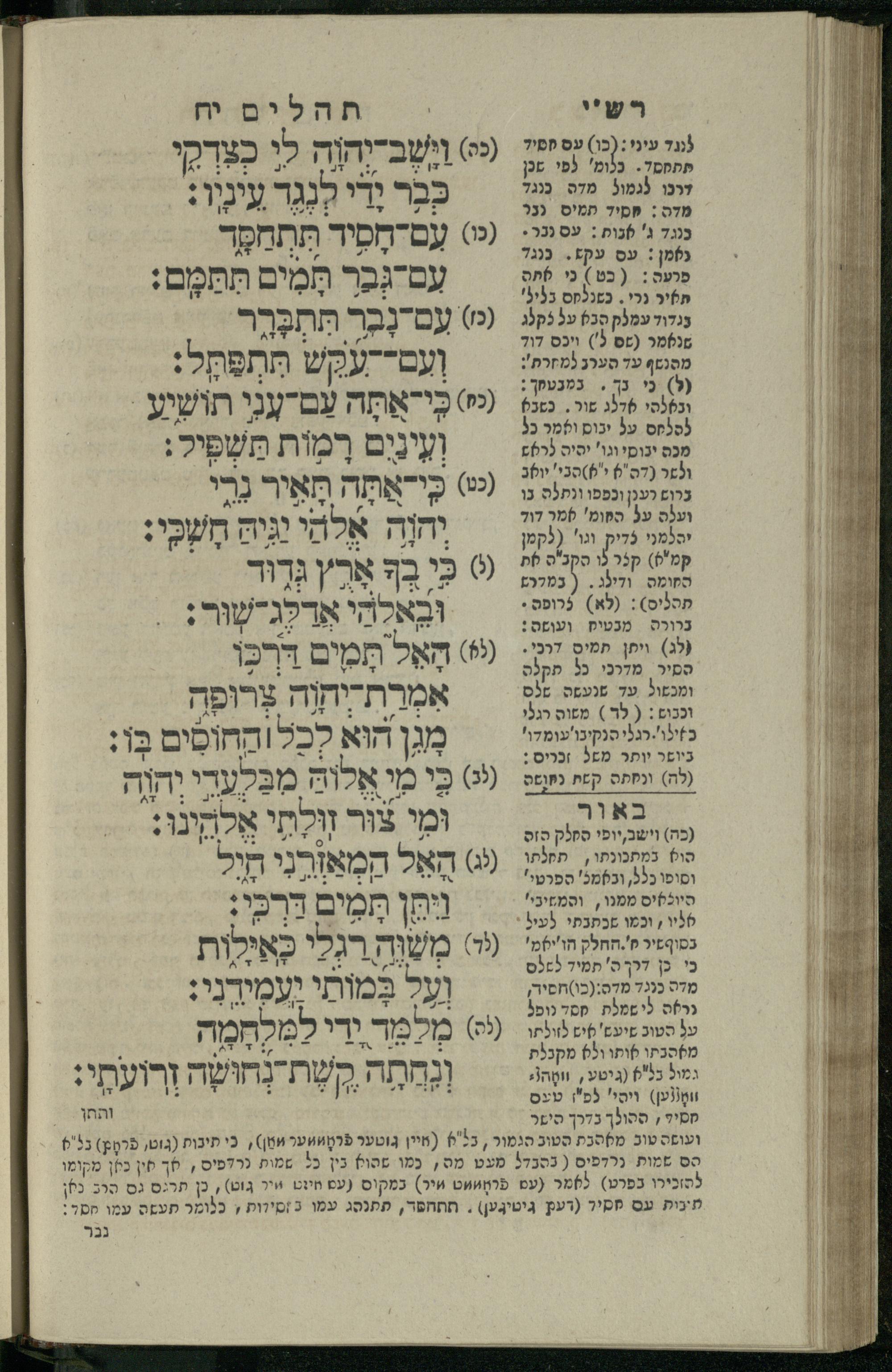 14 (1835) Sefer Tehilim : ʿim Perush Rashi ṿe-targum Ashkenazi me-et Rabenu Mosheh ben Menaḥem n.ʿE., u-veʾur me-et ha-ḥakham ha-mefursam R. Yoʾel Bril asher ḳara be-shem Zemirot Yiśraʾel, ṿe-nilṿeh elaṿ ha-Maʿamar me-et ha-ḥakham ha-medaḳdeḳ mo.h. Ṿolf Meʾir (moreh lashon ʿIvri be-vet ḥinukh ha-normali asher be-Prag), u-ve-tokho nikhlal haʿtaḳah u-veʾur le-khol milot be-laʿaz ha-nimtsaʾot be-Fe. Rashi z.l. / me-et ha-madpis Mosheh ha-Leṿi Landa14 (1835) ספר תהלים / עם פירוש רש״י ותרגום אשכנזי מאת רבינו משה בן מנחם נ״ע, ובאור מאת החכם המפורסם ר' יואל ברי״ל אשר קרא בשם זמירות ישראל, ונלוה אליו המעמר מאת החכם המדקדק מו״ה וואלף מאיר (מורה לשון עברי בבית חנוך הנארמאלי אשר בפראג), ובתוכו נכלל העתקה ובאור לכל מלות בלע״ז הנמצאות בפירש״י ז״ל מאת המדפיס משה הלוי לנדא