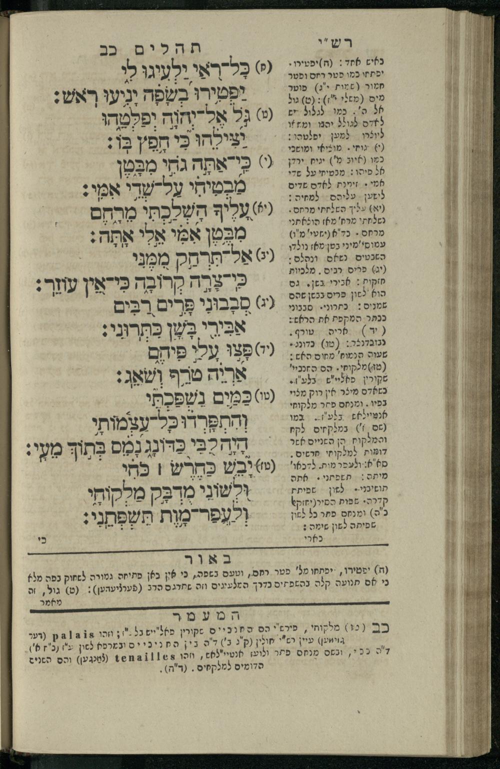 14 (1835) Sefer Tehilim : ʿim Perush Rashi ṿe-targum Ashkenazi me-et Rabenu Mosheh ben Menaḥem n.ʿE., u-veʾur me-et ha-ḥakham ha-mefursam R. Yoʾel Bril asher ḳara be-shem Zemirot Yiśraʾel, ṿe-nilṿeh elaṿ ha-Maʿamar me-et ha-ḥakham ha-medaḳdeḳ mo.h. Ṿolf Meʾir (moreh lashon ʿIvri be-vet ḥinukh ha-normali asher be-Prag), u-ve-tokho nikhlal haʿtaḳah u-veʾur le-khol milot be-laʿaz ha-nimtsaʾot be-Fe. Rashi z.l. / me-et ha-madpis Mosheh ha-Leṿi Landa14 (1835) ספר תהלים / עם פירוש רש״י ותרגום אשכנזי מאת רבינו משה בן מנחם נ״ע, ובאור מאת החכם המפורסם ר' יואל ברי״ל אשר קרא בשם זמירות ישראל, ונלוה אליו המעמר מאת החכם המדקדק מו״ה וואלף מאיר (מורה לשון עברי בבית חנוך הנארמאלי אשר בפראג), ובתוכו נכלל העתקה ובאור לכל מלות בלע״ז הנמצאות בפירש״י ז״ל מאת המדפיס משה הלוי לנדא