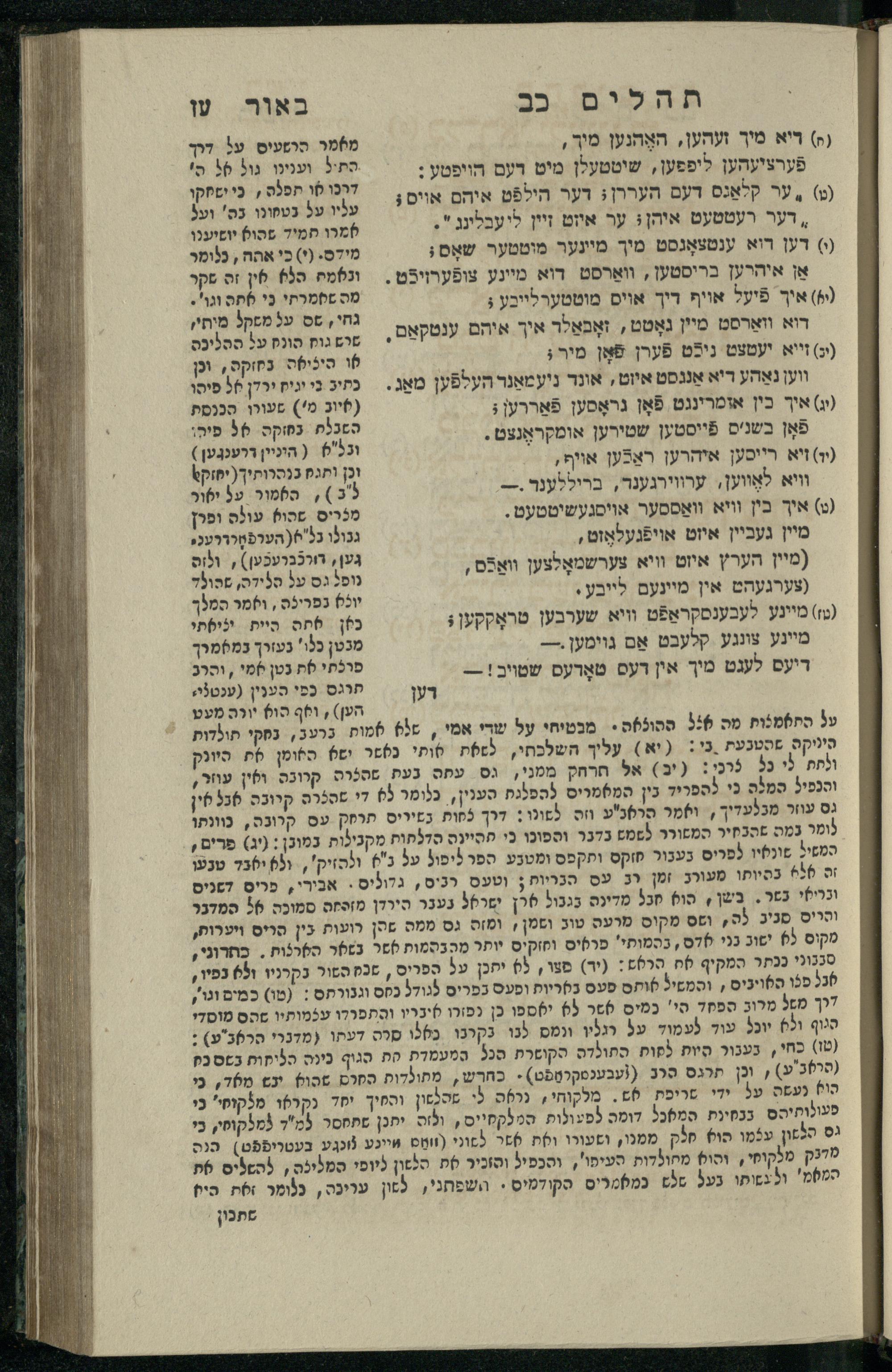 14 (1835) Sefer Tehilim : ʿim Perush Rashi ṿe-targum Ashkenazi me-et Rabenu Mosheh ben Menaḥem n.ʿE., u-veʾur me-et ha-ḥakham ha-mefursam R. Yoʾel Bril asher ḳara be-shem Zemirot Yiśraʾel, ṿe-nilṿeh elaṿ ha-Maʿamar me-et ha-ḥakham ha-medaḳdeḳ mo.h. Ṿolf Meʾir (moreh lashon ʿIvri be-vet ḥinukh ha-normali asher be-Prag), u-ve-tokho nikhlal haʿtaḳah u-veʾur le-khol milot be-laʿaz ha-nimtsaʾot be-Fe. Rashi z.l. / me-et ha-madpis Mosheh ha-Leṿi Landa14 (1835) ספר תהלים / עם פירוש רש״י ותרגום אשכנזי מאת רבינו משה בן מנחם נ״ע, ובאור מאת החכם המפורסם ר' יואל ברי״ל אשר קרא בשם זמירות ישראל, ונלוה אליו המעמר מאת החכם המדקדק מו״ה וואלף מאיר (מורה לשון עברי בבית חנוך הנארמאלי אשר בפראג), ובתוכו נכלל העתקה ובאור לכל מלות בלע״ז הנמצאות בפירש״י ז״ל מאת המדפיס משה הלוי לנדא