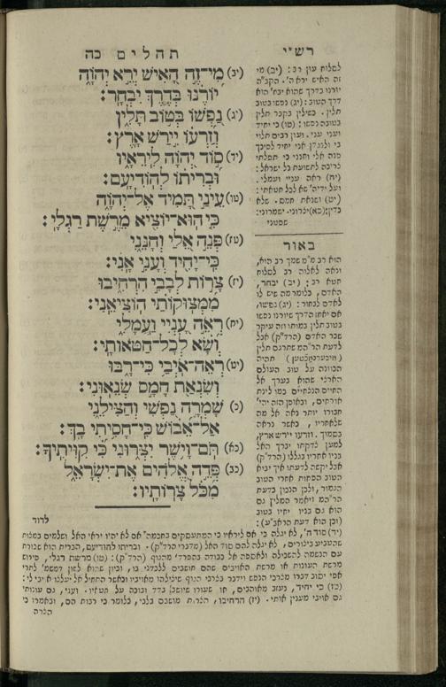14 (1835) Sefer Tehilim : ʿim Perush Rashi ṿe-targum Ashkenazi me-et Rabenu Mosheh ben Menaḥem n.ʿE., u-veʾur me-et ha-ḥakham ha-mefursam R. Yoʾel Bril asher ḳara be-shem Zemirot Yiśraʾel, ṿe-nilṿeh elaṿ ha-Maʿamar me-et ha-ḥakham ha-medaḳdeḳ mo.h. Ṿolf Meʾir (moreh lashon ʿIvri be-vet ḥinukh ha-normali asher be-Prag), u-ve-tokho nikhlal haʿtaḳah u-veʾur le-khol milot be-laʿaz ha-nimtsaʾot be-Fe. Rashi z.l. / me-et ha-madpis Mosheh ha-Leṿi Landa14 (1835) ספר תהלים / עם פירוש רש״י ותרגום אשכנזי מאת רבינו משה בן מנחם נ״ע, ובאור מאת החכם המפורסם ר' יואל ברי״ל אשר קרא בשם זמירות ישראל, ונלוה אליו המעמר מאת החכם המדקדק מו״ה וואלף מאיר (מורה לשון עברי בבית חנוך הנארמאלי אשר בפראג), ובתוכו נכלל העתקה ובאור לכל מלות בלע״ז הנמצאות בפירש״י ז״ל מאת המדפיס משה הלוי לנדא