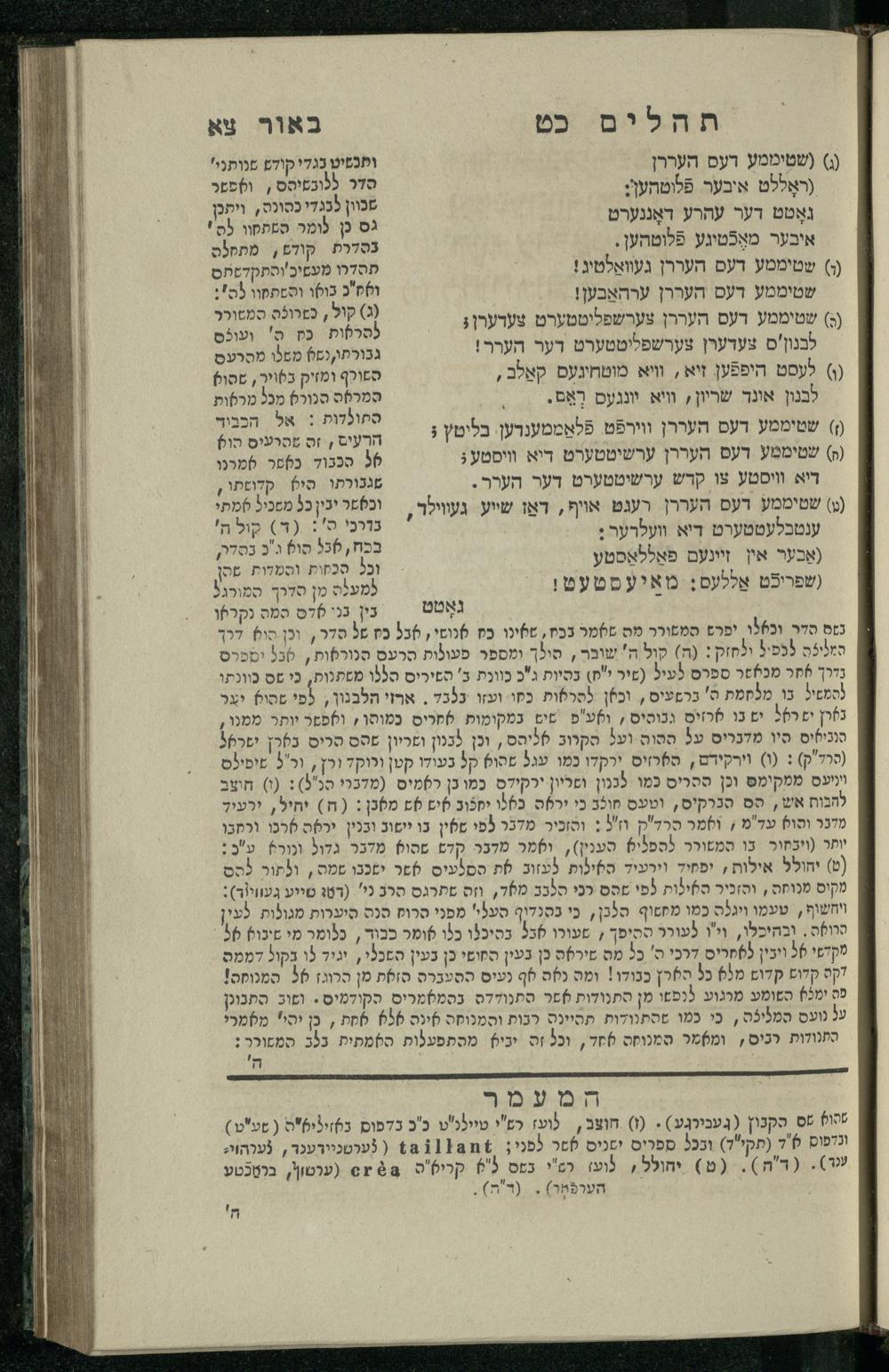 14 (1835) Sefer Tehilim : ʿim Perush Rashi ṿe-targum Ashkenazi me-et Rabenu Mosheh ben Menaḥem n.ʿE., u-veʾur me-et ha-ḥakham ha-mefursam R. Yoʾel Bril asher ḳara be-shem Zemirot Yiśraʾel, ṿe-nilṿeh elaṿ ha-Maʿamar me-et ha-ḥakham ha-medaḳdeḳ mo.h. Ṿolf Meʾir (moreh lashon ʿIvri be-vet ḥinukh ha-normali asher be-Prag), u-ve-tokho nikhlal haʿtaḳah u-veʾur le-khol milot be-laʿaz ha-nimtsaʾot be-Fe. Rashi z.l. / me-et ha-madpis Mosheh ha-Leṿi Landa14 (1835) ספר תהלים / עם פירוש רש״י ותרגום אשכנזי מאת רבינו משה בן מנחם נ״ע, ובאור מאת החכם המפורסם ר' יואל ברי״ל אשר קרא בשם זמירות ישראל, ונלוה אליו המעמר מאת החכם המדקדק מו״ה וואלף מאיר (מורה לשון עברי בבית חנוך הנארמאלי אשר בפראג), ובתוכו נכלל העתקה ובאור לכל מלות בלע״ז הנמצאות בפירש״י ז״ל מאת המדפיס משה הלוי לנדא