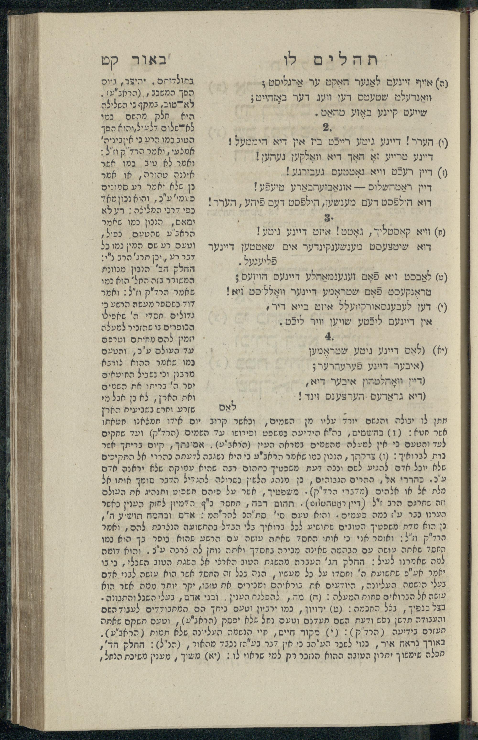 14 (1835) Sefer Tehilim : ʿim Perush Rashi ṿe-targum Ashkenazi me-et Rabenu Mosheh ben Menaḥem n.ʿE., u-veʾur me-et ha-ḥakham ha-mefursam R. Yoʾel Bril asher ḳara be-shem Zemirot Yiśraʾel, ṿe-nilṿeh elaṿ ha-Maʿamar me-et ha-ḥakham ha-medaḳdeḳ mo.h. Ṿolf Meʾir (moreh lashon ʿIvri be-vet ḥinukh ha-normali asher be-Prag), u-ve-tokho nikhlal haʿtaḳah u-veʾur le-khol milot be-laʿaz ha-nimtsaʾot be-Fe. Rashi z.l. / me-et ha-madpis Mosheh ha-Leṿi Landa14 (1835) ספר תהלים / עם פירוש רש״י ותרגום אשכנזי מאת רבינו משה בן מנחם נ״ע, ובאור מאת החכם המפורסם ר' יואל ברי״ל אשר קרא בשם זמירות ישראל, ונלוה אליו המעמר מאת החכם המדקדק מו״ה וואלף מאיר (מורה לשון עברי בבית חנוך הנארמאלי אשר בפראג), ובתוכו נכלל העתקה ובאור לכל מלות בלע״ז הנמצאות בפירש״י ז״ל מאת המדפיס משה הלוי לנדא