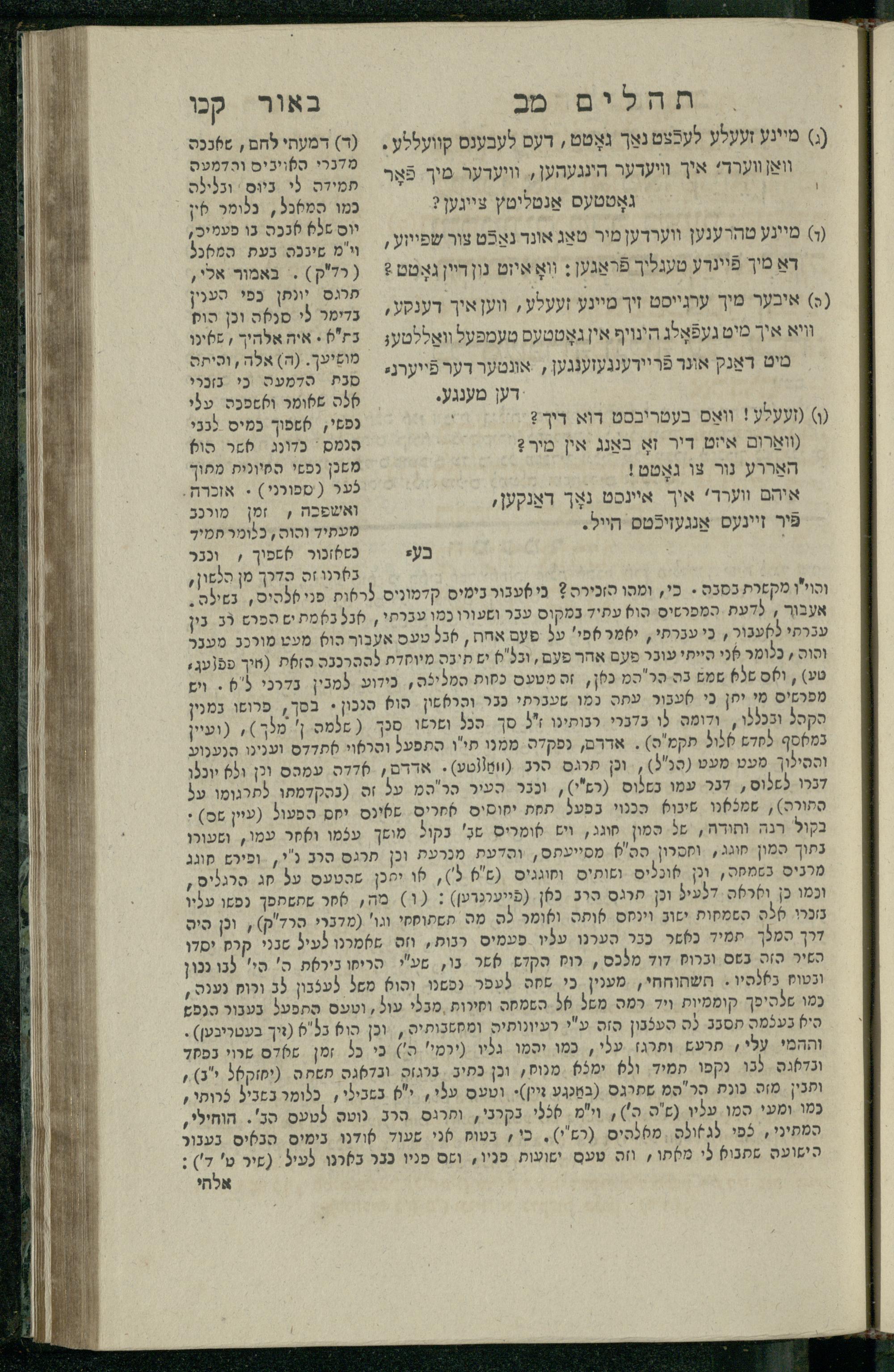 14 (1835) Sefer Tehilim : ʿim Perush Rashi ṿe-targum Ashkenazi me-et Rabenu Mosheh ben Menaḥem n.ʿE., u-veʾur me-et ha-ḥakham ha-mefursam R. Yoʾel Bril asher ḳara be-shem Zemirot Yiśraʾel, ṿe-nilṿeh elaṿ ha-Maʿamar me-et ha-ḥakham ha-medaḳdeḳ mo.h. Ṿolf Meʾir (moreh lashon ʿIvri be-vet ḥinukh ha-normali asher be-Prag), u-ve-tokho nikhlal haʿtaḳah u-veʾur le-khol milot be-laʿaz ha-nimtsaʾot be-Fe. Rashi z.l. / me-et ha-madpis Mosheh ha-Leṿi Landa14 (1835) ספר תהלים / עם פירוש רש״י ותרגום אשכנזי מאת רבינו משה בן מנחם נ״ע, ובאור מאת החכם המפורסם ר' יואל ברי״ל אשר קרא בשם זמירות ישראל, ונלוה אליו המעמר מאת החכם המדקדק מו״ה וואלף מאיר (מורה לשון עברי בבית חנוך הנארמאלי אשר בפראג), ובתוכו נכלל העתקה ובאור לכל מלות בלע״ז הנמצאות בפירש״י ז״ל מאת המדפיס משה הלוי לנדא