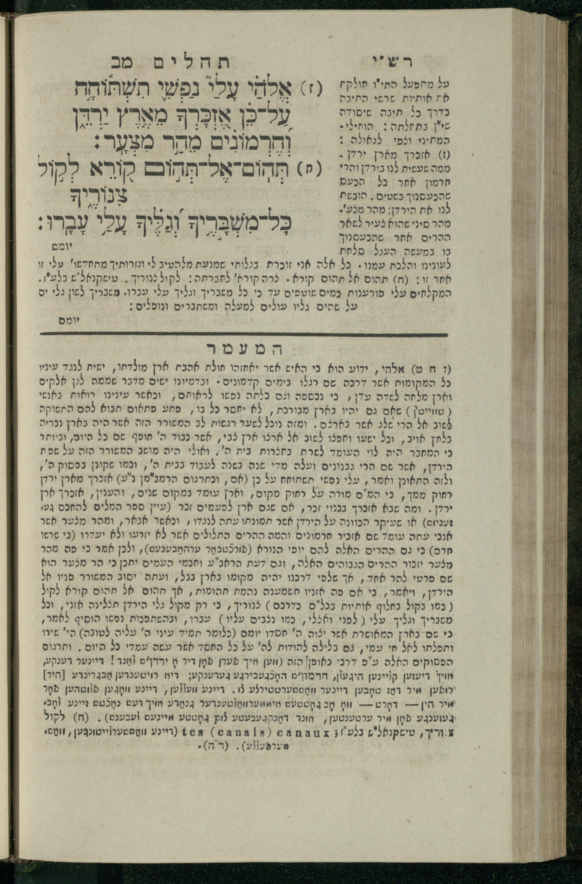 14 (1835) Sefer Tehilim : ʿim Perush Rashi ṿe-targum Ashkenazi me-et Rabenu Mosheh ben Menaḥem n.ʿE., u-veʾur me-et ha-ḥakham ha-mefursam R. Yoʾel Bril asher ḳara be-shem Zemirot Yiśraʾel, ṿe-nilṿeh elaṿ ha-Maʿamar me-et ha-ḥakham ha-medaḳdeḳ mo.h. Ṿolf Meʾir (moreh lashon ʿIvri be-vet ḥinukh ha-normali asher be-Prag), u-ve-tokho nikhlal haʿtaḳah u-veʾur le-khol milot be-laʿaz ha-nimtsaʾot be-Fe. Rashi z.l. / me-et ha-madpis Mosheh ha-Leṿi Landa14 (1835) ספר תהלים / עם פירוש רש״י ותרגום אשכנזי מאת רבינו משה בן מנחם נ״ע, ובאור מאת החכם המפורסם ר' יואל ברי״ל אשר קרא בשם זמירות ישראל, ונלוה אליו המעמר מאת החכם המדקדק מו״ה וואלף מאיר (מורה לשון עברי בבית חנוך הנארמאלי אשר בפראג), ובתוכו נכלל העתקה ובאור לכל מלות בלע״ז הנמצאות בפירש״י ז״ל מאת המדפיס משה הלוי לנדא