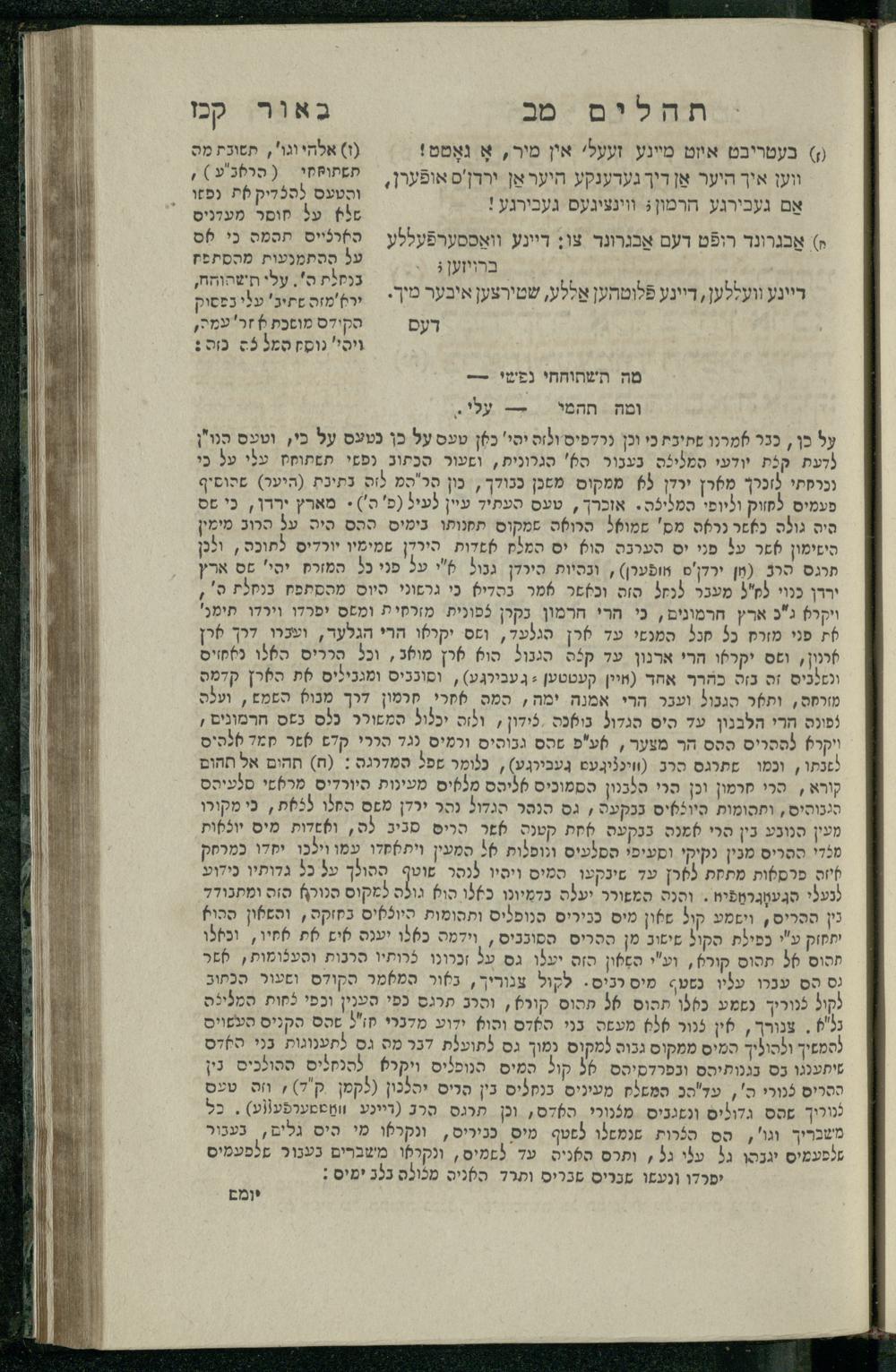 14 (1835) Sefer Tehilim : ʿim Perush Rashi ṿe-targum Ashkenazi me-et Rabenu Mosheh ben Menaḥem n.ʿE., u-veʾur me-et ha-ḥakham ha-mefursam R. Yoʾel Bril asher ḳara be-shem Zemirot Yiśraʾel, ṿe-nilṿeh elaṿ ha-Maʿamar me-et ha-ḥakham ha-medaḳdeḳ mo.h. Ṿolf Meʾir (moreh lashon ʿIvri be-vet ḥinukh ha-normali asher be-Prag), u-ve-tokho nikhlal haʿtaḳah u-veʾur le-khol milot be-laʿaz ha-nimtsaʾot be-Fe. Rashi z.l. / me-et ha-madpis Mosheh ha-Leṿi Landa14 (1835) ספר תהלים / עם פירוש רש״י ותרגום אשכנזי מאת רבינו משה בן מנחם נ״ע, ובאור מאת החכם המפורסם ר' יואל ברי״ל אשר קרא בשם זמירות ישראל, ונלוה אליו המעמר מאת החכם המדקדק מו״ה וואלף מאיר (מורה לשון עברי בבית חנוך הנארמאלי אשר בפראג), ובתוכו נכלל העתקה ובאור לכל מלות בלע״ז הנמצאות בפירש״י ז״ל מאת המדפיס משה הלוי לנדא