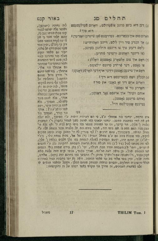 14 (1835) Sefer Tehilim : ʿim Perush Rashi ṿe-targum Ashkenazi me-et Rabenu Mosheh ben Menaḥem n.ʿE., u-veʾur me-et ha-ḥakham ha-mefursam R. Yoʾel Bril asher ḳara be-shem Zemirot Yiśraʾel, ṿe-nilṿeh elaṿ ha-Maʿamar me-et ha-ḥakham ha-medaḳdeḳ mo.h. Ṿolf Meʾir (moreh lashon ʿIvri be-vet ḥinukh ha-normali asher be-Prag), u-ve-tokho nikhlal haʿtaḳah u-veʾur le-khol milot be-laʿaz ha-nimtsaʾot be-Fe. Rashi z.l. / me-et ha-madpis Mosheh ha-Leṿi Landa14 (1835) ספר תהלים / עם פירוש רש״י ותרגום אשכנזי מאת רבינו משה בן מנחם נ״ע, ובאור מאת החכם המפורסם ר' יואל ברי״ל אשר קרא בשם זמירות ישראל, ונלוה אליו המעמר מאת החכם המדקדק מו״ה וואלף מאיר (מורה לשון עברי בבית חנוך הנארמאלי אשר בפראג), ובתוכו נכלל העתקה ובאור לכל מלות בלע״ז הנמצאות בפירש״י ז״ל מאת המדפיס משה הלוי לנדא