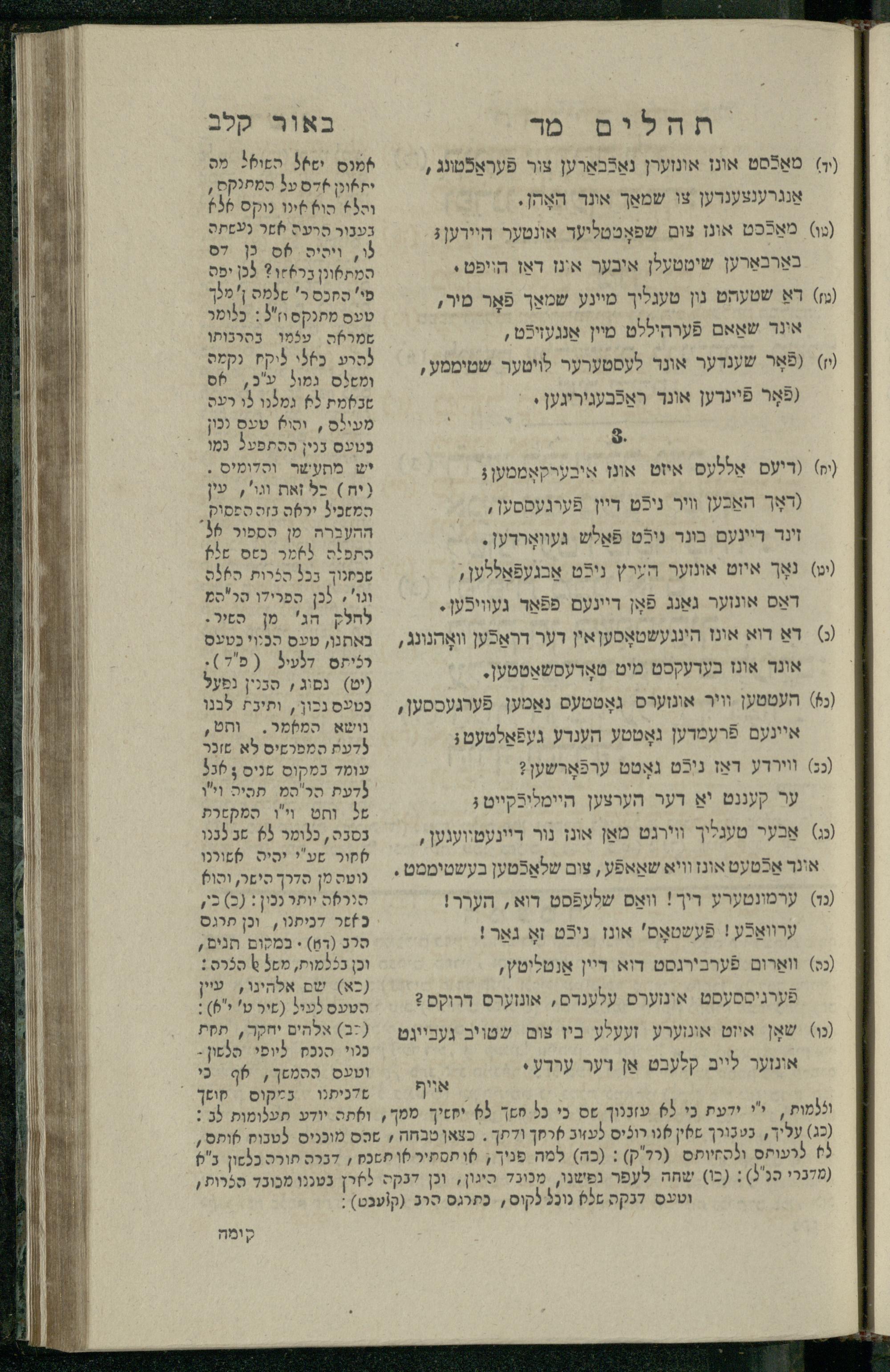 14 (1835) Sefer Tehilim : ʿim Perush Rashi ṿe-targum Ashkenazi me-et Rabenu Mosheh ben Menaḥem n.ʿE., u-veʾur me-et ha-ḥakham ha-mefursam R. Yoʾel Bril asher ḳara be-shem Zemirot Yiśraʾel, ṿe-nilṿeh elaṿ ha-Maʿamar me-et ha-ḥakham ha-medaḳdeḳ mo.h. Ṿolf Meʾir (moreh lashon ʿIvri be-vet ḥinukh ha-normali asher be-Prag), u-ve-tokho nikhlal haʿtaḳah u-veʾur le-khol milot be-laʿaz ha-nimtsaʾot be-Fe. Rashi z.l. / me-et ha-madpis Mosheh ha-Leṿi Landa14 (1835) ספר תהלים / עם פירוש רש״י ותרגום אשכנזי מאת רבינו משה בן מנחם נ״ע, ובאור מאת החכם המפורסם ר' יואל ברי״ל אשר קרא בשם זמירות ישראל, ונלוה אליו המעמר מאת החכם המדקדק מו״ה וואלף מאיר (מורה לשון עברי בבית חנוך הנארמאלי אשר בפראג), ובתוכו נכלל העתקה ובאור לכל מלות בלע״ז הנמצאות בפירש״י ז״ל מאת המדפיס משה הלוי לנדא