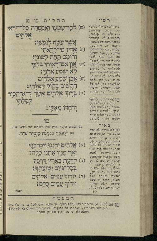 14 (1835) Sefer Tehilim : ʿim Perush Rashi ṿe-targum Ashkenazi me-et Rabenu Mosheh ben Menaḥem n.ʿE., u-veʾur me-et ha-ḥakham ha-mefursam R. Yoʾel Bril asher ḳara be-shem Zemirot Yiśraʾel, ṿe-nilṿeh elaṿ ha-Maʿamar me-et ha-ḥakham ha-medaḳdeḳ mo.h. Ṿolf Meʾir (moreh lashon ʿIvri be-vet ḥinukh ha-normali asher be-Prag), u-ve-tokho nikhlal haʿtaḳah u-veʾur le-khol milot be-laʿaz ha-nimtsaʾot be-Fe. Rashi z.l. / me-et ha-madpis Mosheh ha-Leṿi Landa14 (1835) ספר תהלים / עם פירוש רש״י ותרגום אשכנזי מאת רבינו משה בן מנחם נ״ע, ובאור מאת החכם המפורסם ר' יואל ברי״ל אשר קרא בשם זמירות ישראל, ונלוה אליו המעמר מאת החכם המדקדק מו״ה וואלף מאיר (מורה לשון עברי בבית חנוך הנארמאלי אשר בפראג), ובתוכו נכלל העתקה ובאור לכל מלות בלע״ז הנמצאות בפירש״י ז״ל מאת המדפיס משה הלוי לנדא