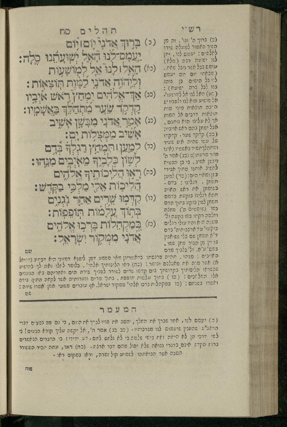 14 (1835) Sefer Tehilim : ʿim Perush Rashi ṿe-targum Ashkenazi me-et Rabenu Mosheh ben Menaḥem n.ʿE., u-veʾur me-et ha-ḥakham ha-mefursam R. Yoʾel Bril asher ḳara be-shem Zemirot Yiśraʾel, ṿe-nilṿeh elaṿ ha-Maʿamar me-et ha-ḥakham ha-medaḳdeḳ mo.h. Ṿolf Meʾir (moreh lashon ʿIvri be-vet ḥinukh ha-normali asher be-Prag), u-ve-tokho nikhlal haʿtaḳah u-veʾur le-khol milot be-laʿaz ha-nimtsaʾot be-Fe. Rashi z.l. / me-et ha-madpis Mosheh ha-Leṿi Landa14 (1835) ספר תהלים / עם פירוש רש״י ותרגום אשכנזי מאת רבינו משה בן מנחם נ״ע, ובאור מאת החכם המפורסם ר' יואל ברי״ל אשר קרא בשם זמירות ישראל, ונלוה אליו המעמר מאת החכם המדקדק מו״ה וואלף מאיר (מורה לשון עברי בבית חנוך הנארמאלי אשר בפראג), ובתוכו נכלל העתקה ובאור לכל מלות בלע״ז הנמצאות בפירש״י ז״ל מאת המדפיס משה הלוי לנדא