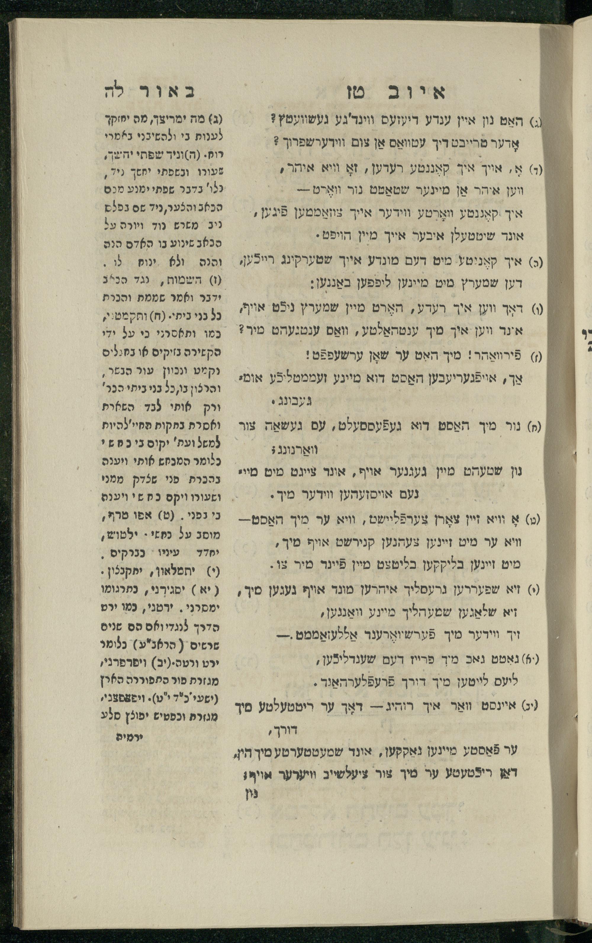 17 (1836) Sefer Iyov / meturgam Ashkenazi u-mevoʾar me-iti Mosheh ha-Leṿi Landa, ṿe-nilṿeh elaṿ Perush Rashi ṿe-haʿtaḳah u-veʾur kol milot be-laʿaz17 (1836) ספר איוב / מתורגם אשכנזי ומבואר מאתי משה הלוי לנדא, ונלוה אליו פירוש רש״י והעתקה ובאור כל מלות בלע״ז