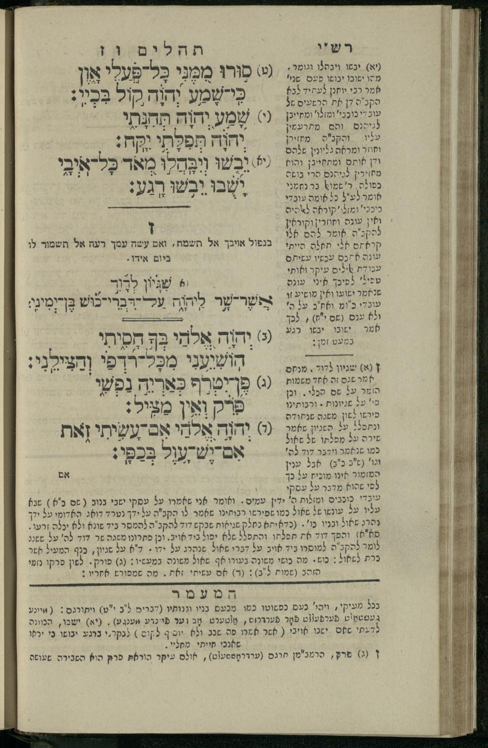14 (1835) Sefer Tehilim : ʿim Perush Rashi ṿe-targum Ashkenazi me-et Rabenu Mosheh ben Menaḥem n.ʿE., u-veʾur me-et ha-ḥakham ha-mefursam R. Yoʾel Bril asher ḳara be-shem Zemirot Yiśraʾel, ṿe-nilṿeh elaṿ ha-Maʿamar me-et ha-ḥakham ha-medaḳdeḳ mo.h. Ṿolf Meʾir (moreh lashon ʿIvri be-vet ḥinukh ha-normali asher be-Prag), u-ve-tokho nikhlal haʿtaḳah u-veʾur le-khol milot be-laʿaz ha-nimtsaʾot be-Fe. Rashi z.l. / me-et ha-madpis Mosheh ha-Leṿi Landa14 (1835) ספר תהלים / עם פירוש רש״י ותרגום אשכנזי מאת רבינו משה בן מנחם נ״ע, ובאור מאת החכם המפורסם ר' יואל ברי״ל אשר קרא בשם זמירות ישראל, ונלוה אליו המעמר מאת החכם המדקדק מו״ה וואלף מאיר (מורה לשון עברי בבית חנוך הנארמאלי אשר בפראג), ובתוכו נכלל העתקה ובאור לכל מלות בלע״ז הנמצאות בפירש״י ז״ל מאת המדפיס משה הלוי לנדא