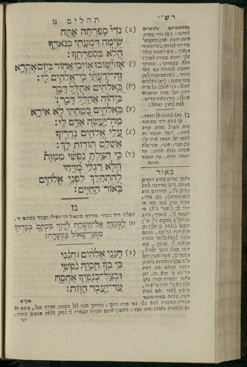 14 (1835) Sefer Tehilim : ʿim Perush Rashi ṿe-targum Ashkenazi me-et Rabenu Mosheh ben Menaḥem n.ʿE., u-veʾur me-et ha-ḥakham ha-mefursam R. Yoʾel Bril asher ḳara be-shem Zemirot Yiśraʾel, ṿe-nilṿeh elaṿ ha-Maʿamar me-et ha-ḥakham ha-medaḳdeḳ mo.h. Ṿolf Meʾir (moreh lashon ʿIvri be-vet ḥinukh ha-normali asher be-Prag), u-ve-tokho nikhlal haʿtaḳah u-veʾur le-khol milot be-laʿaz ha-nimtsaʾot be-Fe. Rashi z.l. / me-et ha-madpis Mosheh ha-Leṿi Landa14 (1835) ספר תהלים / עם פירוש רש״י ותרגום אשכנזי מאת רבינו משה בן מנחם נ״ע, ובאור מאת החכם המפורסם ר' יואל ברי״ל אשר קרא בשם זמירות ישראל, ונלוה אליו המעמר מאת החכם המדקדק מו״ה וואלף מאיר (מורה לשון עברי בבית חנוך הנארמאלי אשר בפראג), ובתוכו נכלל העתקה ובאור לכל מלות בלע״ז הנמצאות בפירש״י ז״ל מאת המדפיס משה הלוי לנדא