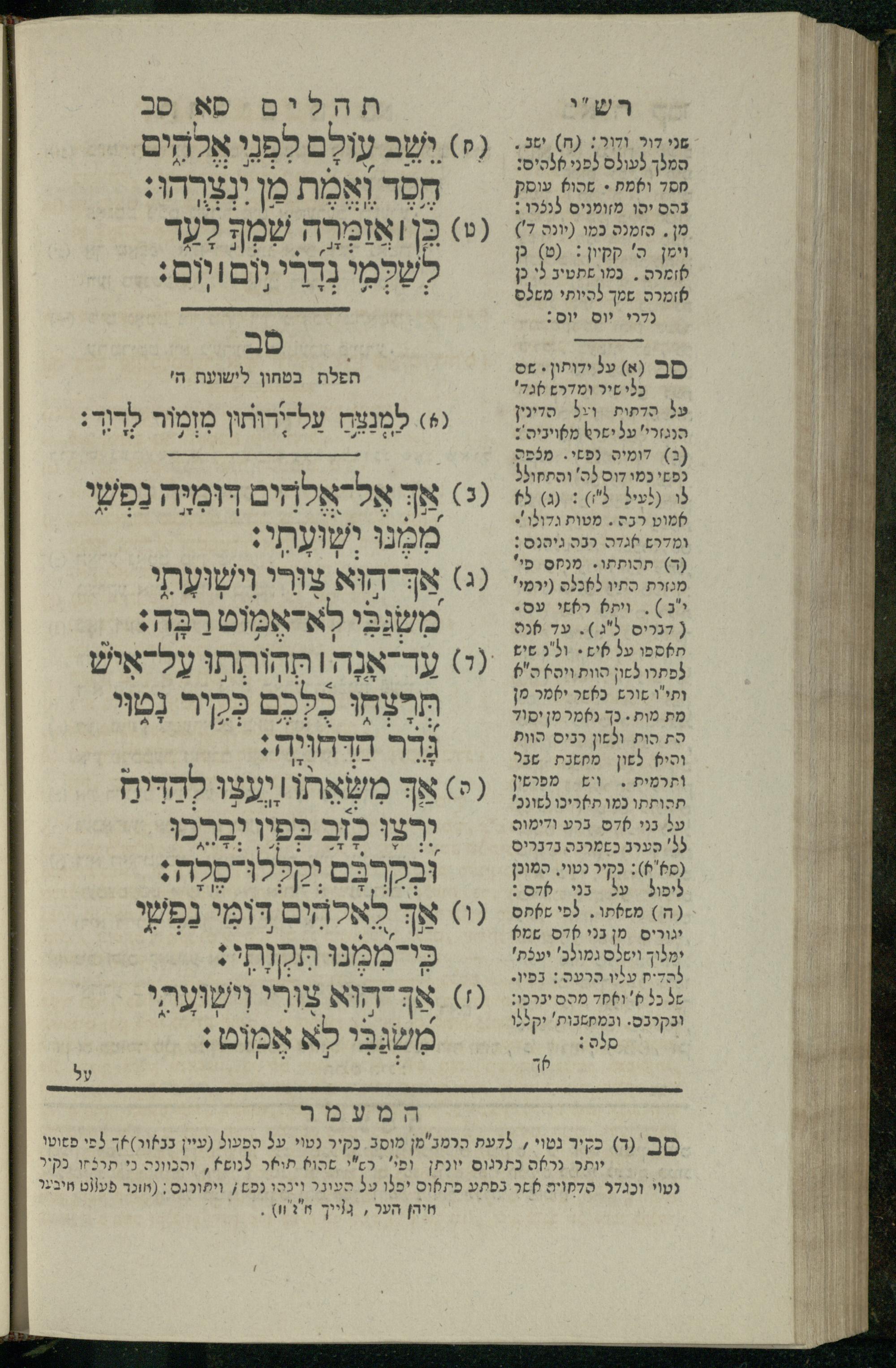 14 (1835) Sefer Tehilim : ʿim Perush Rashi ṿe-targum Ashkenazi me-et Rabenu Mosheh ben Menaḥem n.ʿE., u-veʾur me-et ha-ḥakham ha-mefursam R. Yoʾel Bril asher ḳara be-shem Zemirot Yiśraʾel, ṿe-nilṿeh elaṿ ha-Maʿamar me-et ha-ḥakham ha-medaḳdeḳ mo.h. Ṿolf Meʾir (moreh lashon ʿIvri be-vet ḥinukh ha-normali asher be-Prag), u-ve-tokho nikhlal haʿtaḳah u-veʾur le-khol milot be-laʿaz ha-nimtsaʾot be-Fe. Rashi z.l. / me-et ha-madpis Mosheh ha-Leṿi Landa14 (1835) ספר תהלים / עם פירוש רש״י ותרגום אשכנזי מאת רבינו משה בן מנחם נ״ע, ובאור מאת החכם המפורסם ר' יואל ברי״ל אשר קרא בשם זמירות ישראל, ונלוה אליו המעמר מאת החכם המדקדק מו״ה וואלף מאיר (מורה לשון עברי בבית חנוך הנארמאלי אשר בפראג), ובתוכו נכלל העתקה ובאור לכל מלות בלע״ז הנמצאות בפירש״י ז״ל מאת המדפיס משה הלוי לנדא