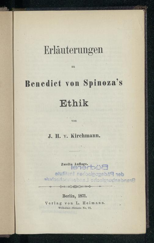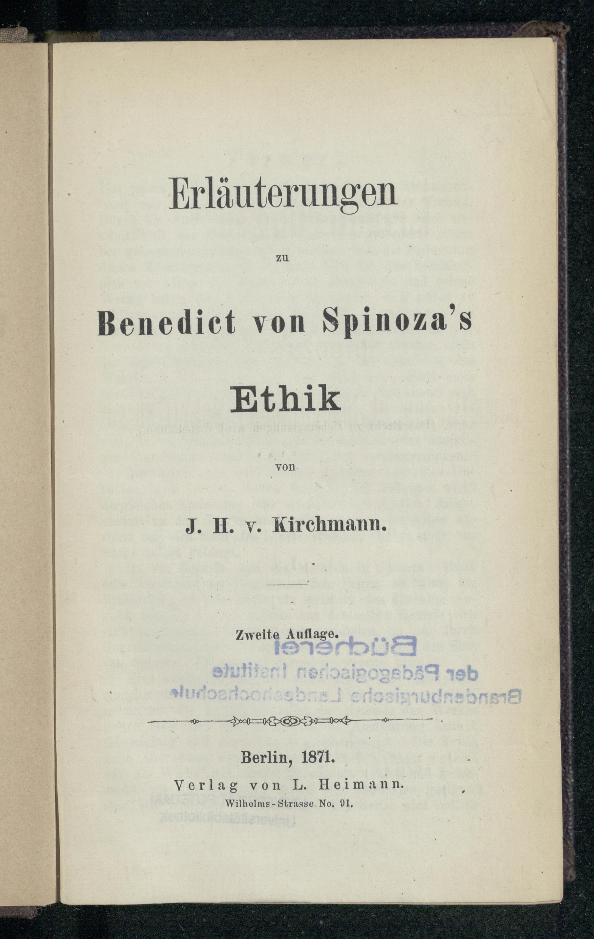 Erläuterungen zu Benedict von Spinoza's Ethik / von J. H. v. Kirchmann