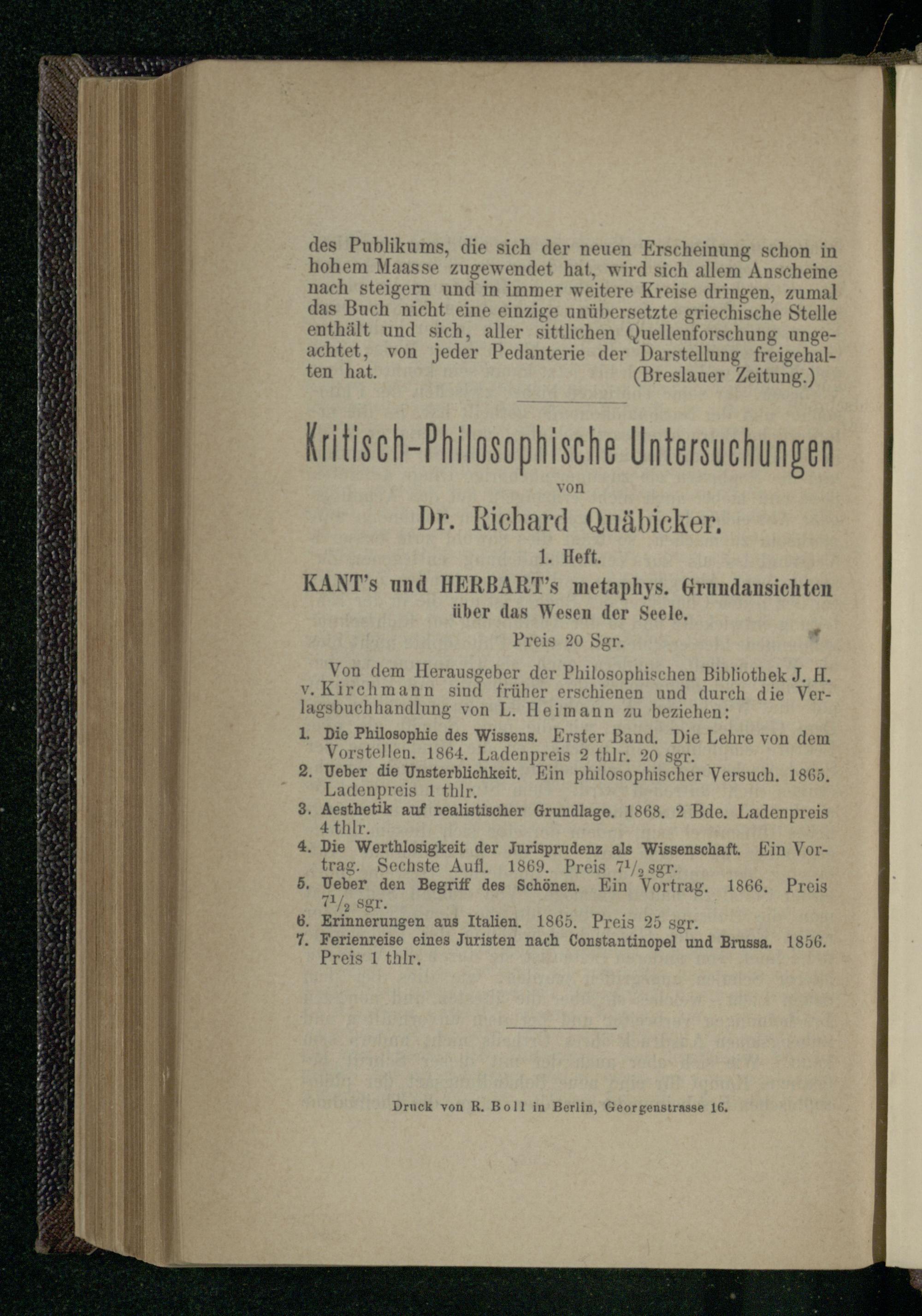 Dr. Richard Quäbicker: Kritisch-Philosophische Untersuchungen