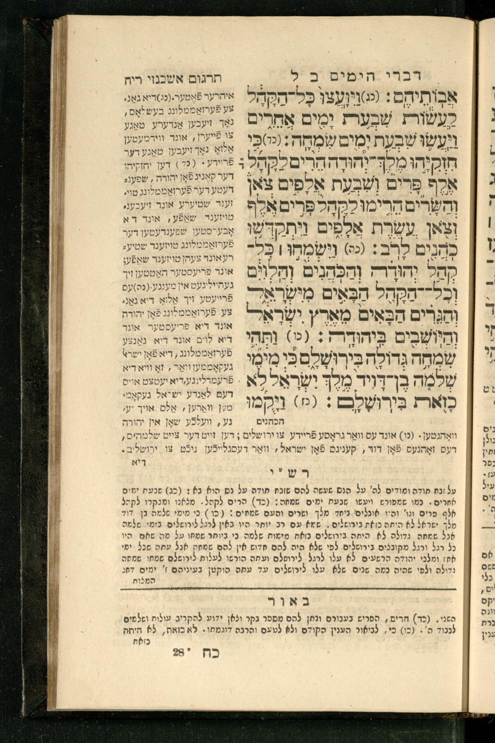 19 (1836) Sefer Divre ha-yamim 1 / meturgam me-ḥadash u-mevoʾar me-iti Yosef Ṿayse, ṿe-nilṿah elaṿ Perush Rashi ṿe-haʿtaḳat u-veʾur kol milot be-laʿaz me-et ha-madpis Mosheh ha-Leṿi Landaʾ19 (1836) ספר דברי הימים א / מתורגם מחדש ומבואר מאתי יוסף ווייסע, ונלוה אליו פירוש רש''י והעתקת ובאור כל מלות בלע''ז מאת המדפיס משה הלוי לנדא