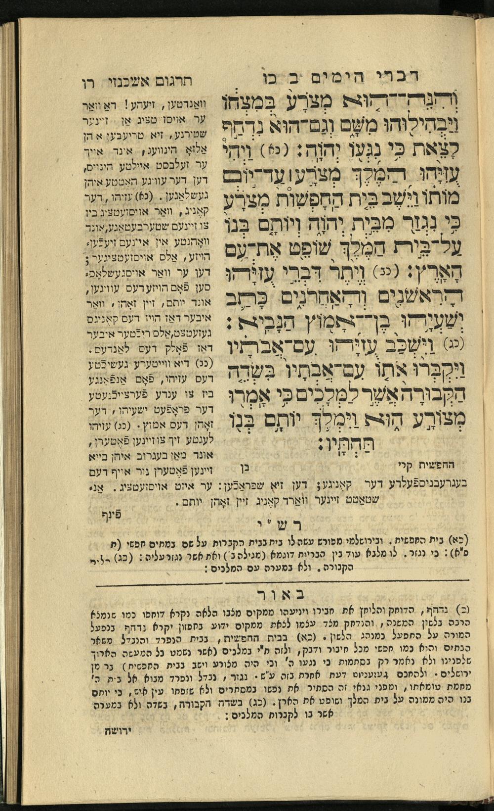 19 (1836) Sefer Divre ha-yamim 1 / meturgam me-ḥadash u-mevoʾar me-iti Yosef Ṿayse, ṿe-nilṿah elaṿ Perush Rashi ṿe-haʿtaḳat u-veʾur kol milot be-laʿaz me-et ha-madpis Mosheh ha-Leṿi Landaʾ19 (1836) ספר דברי הימים א / מתורגם מחדש ומבואר מאתי יוסף ווייסע, ונלוה אליו פירוש רש''י והעתקת ובאור כל מלות בלע''ז מאת המדפיס משה הלוי לנדא