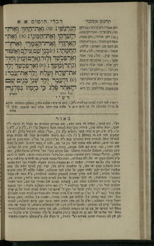 19 (1836) Sefer Divre ha-yamim 1 / meturgam me-ḥadash u-mevoʾar me-iti Yosef Ṿayse, ṿe-nilṿah elaṿ Perush Rashi ṿe-haʿtaḳat u-veʾur kol milot be-laʿaz me-et ha-madpis Mosheh ha-Leṿi Landaʾ19 (1836) ספר דברי הימים א / מתורגם מחדש ומבואר מאתי יוסף ווייסע, ונלוה אליו פירוש רש''י והעתקת ובאור כל מלות בלע''ז מאת המדפיס משה הלוי לנדא