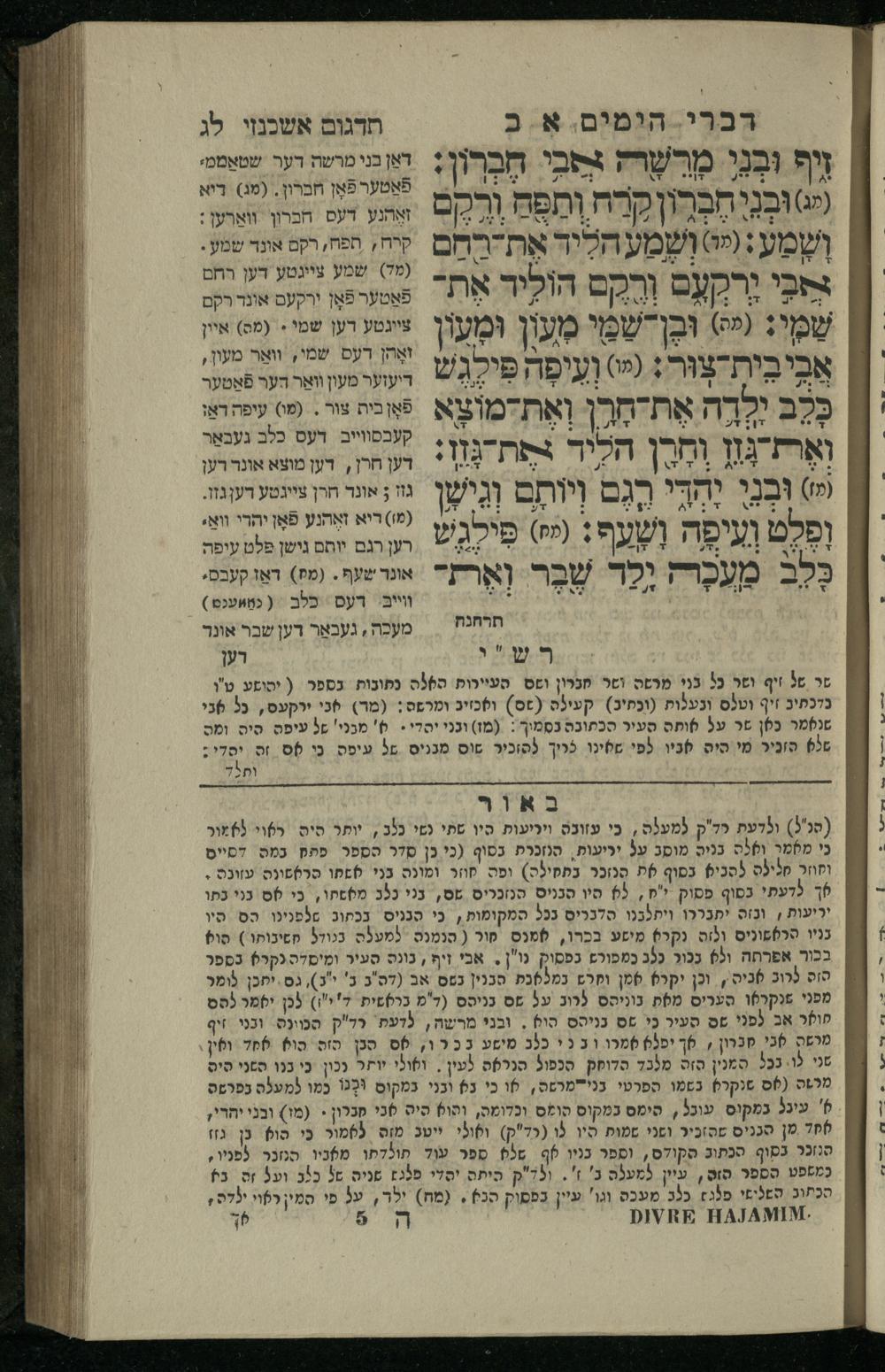 19 (1836) Sefer Divre ha-yamim 1 / meturgam me-ḥadash u-mevoʾar me-iti Yosef Ṿayse, ṿe-nilṿah elaṿ Perush Rashi ṿe-haʿtaḳat u-veʾur kol milot be-laʿaz me-et ha-madpis Mosheh ha-Leṿi Landaʾ19 (1836) ספר דברי הימים א / מתורגם מחדש ומבואר מאתי יוסף ווייסע, ונלוה אליו פירוש רש''י והעתקת ובאור כל מלות בלע''ז מאת המדפיס משה הלוי לנדא