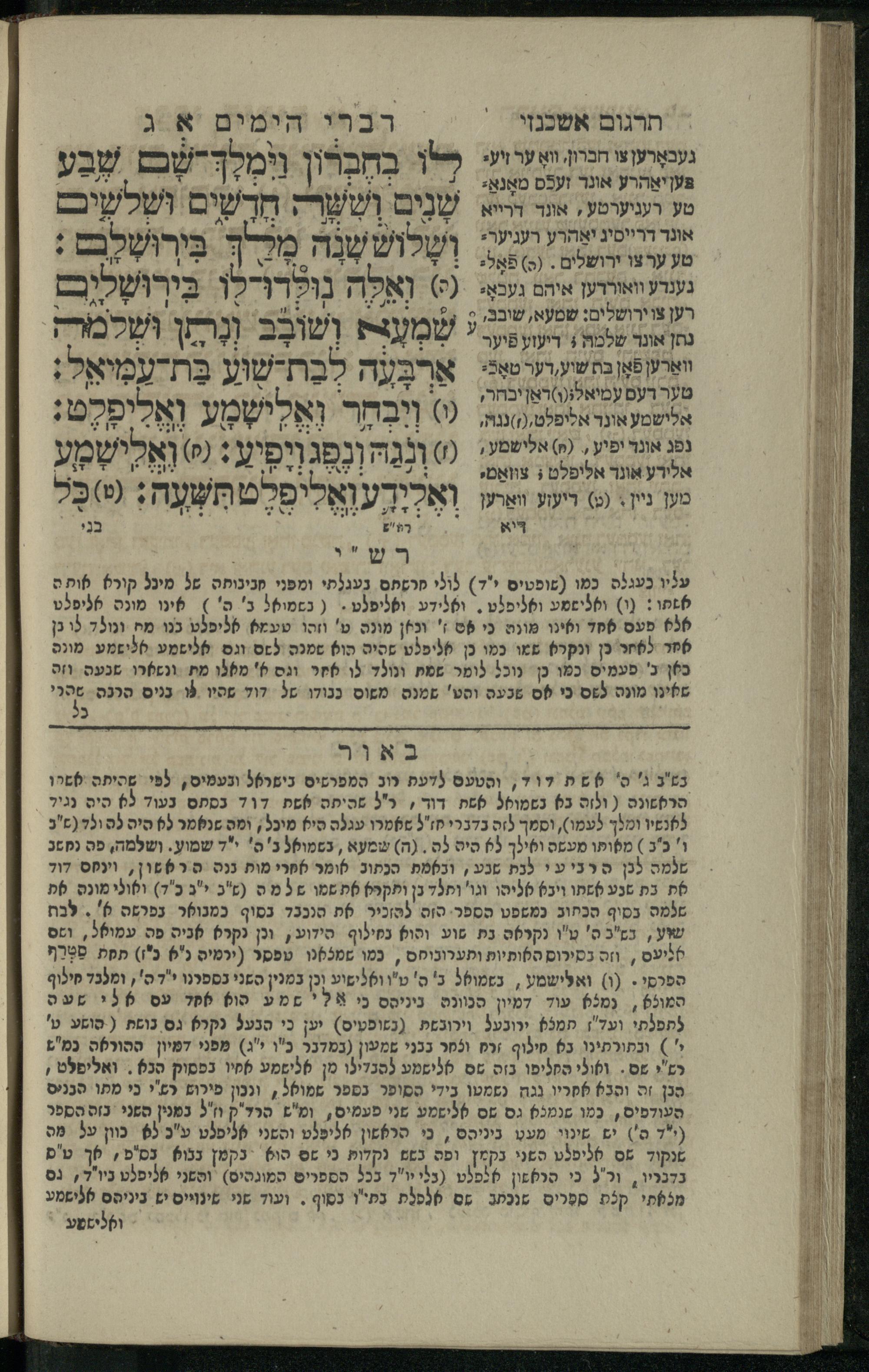 19 (1836) Sefer Divre ha-yamim 1 / meturgam me-ḥadash u-mevoʾar me-iti Yosef Ṿayse, ṿe-nilṿah elaṿ Perush Rashi ṿe-haʿtaḳat u-veʾur kol milot be-laʿaz me-et ha-madpis Mosheh ha-Leṿi Landaʾ19 (1836) ספר דברי הימים א / מתורגם מחדש ומבואר מאתי יוסף ווייסע, ונלוה אליו פירוש רש''י והעתקת ובאור כל מלות בלע''ז מאת המדפיס משה הלוי לנדא
