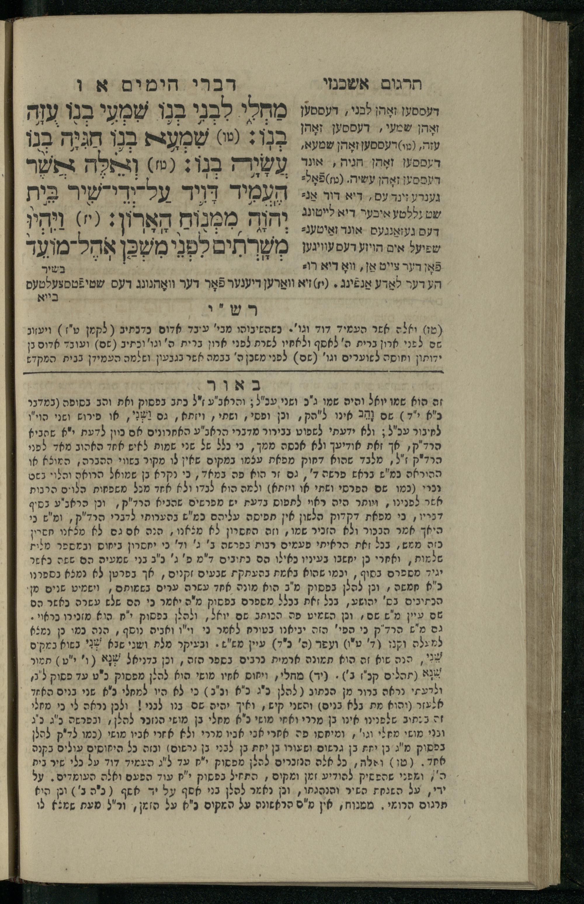 19 (1836) Sefer Divre ha-yamim 1 / meturgam me-ḥadash u-mevoʾar me-iti Yosef Ṿayse, ṿe-nilṿah elaṿ Perush Rashi ṿe-haʿtaḳat u-veʾur kol milot be-laʿaz me-et ha-madpis Mosheh ha-Leṿi Landaʾ19 (1836) ספר דברי הימים א / מתורגם מחדש ומבואר מאתי יוסף ווייסע, ונלוה אליו פירוש רש''י והעתקת ובאור כל מלות בלע''ז מאת המדפיס משה הלוי לנדא