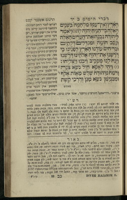 19 (1836) Sefer Divre ha-yamim 1 / meturgam me-ḥadash u-mevoʾar me-iti Yosef Ṿayse, ṿe-nilṿah elaṿ Perush Rashi ṿe-haʿtaḳat u-veʾur kol milot be-laʿaz me-et ha-madpis Mosheh ha-Leṿi Landaʾ19 (1836) ספר דברי הימים א / מתורגם מחדש ומבואר מאתי יוסף ווייסע, ונלוה אליו פירוש רש''י והעתקת ובאור כל מלות בלע''ז מאת המדפיס משה הלוי לנדא