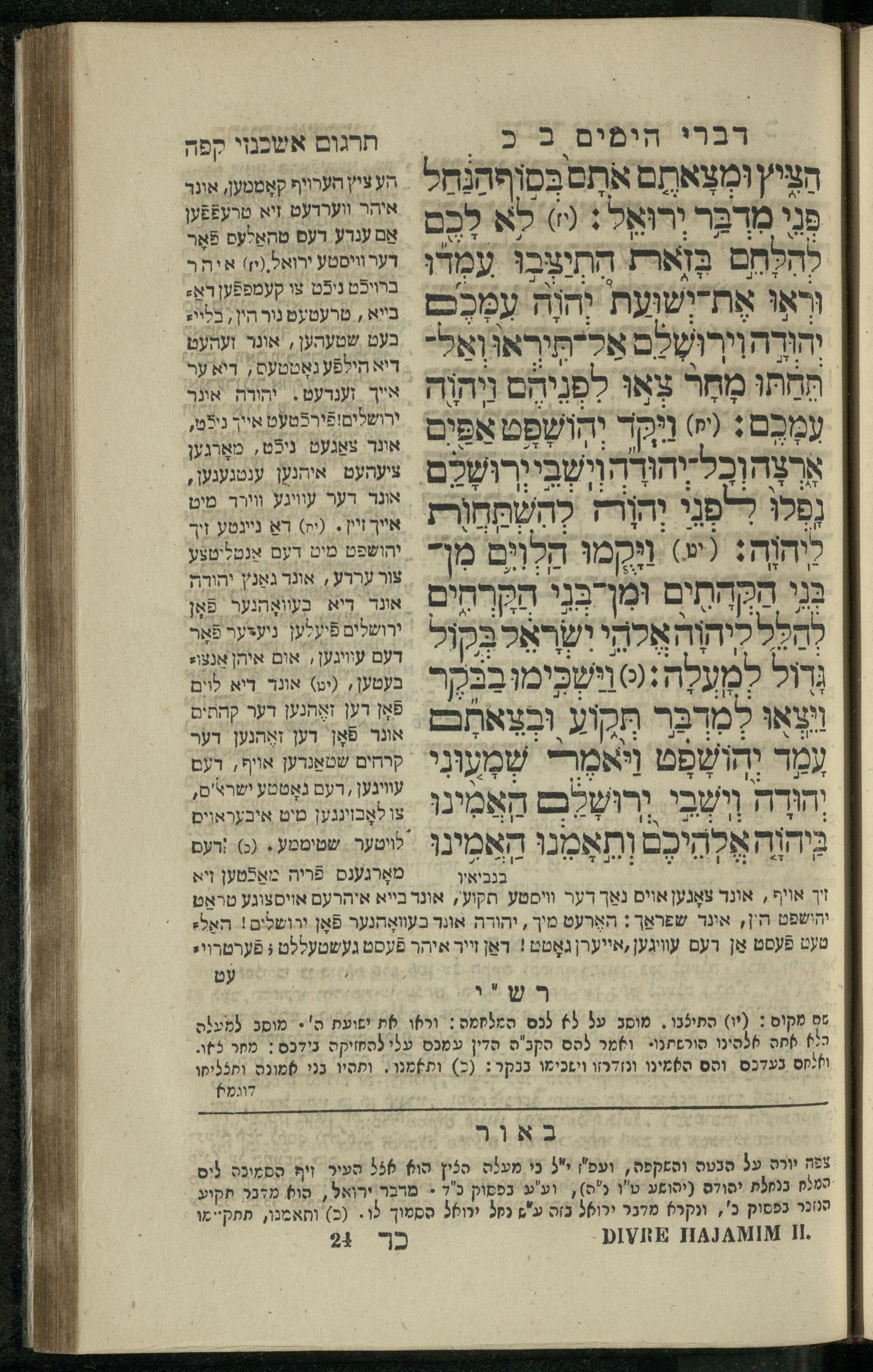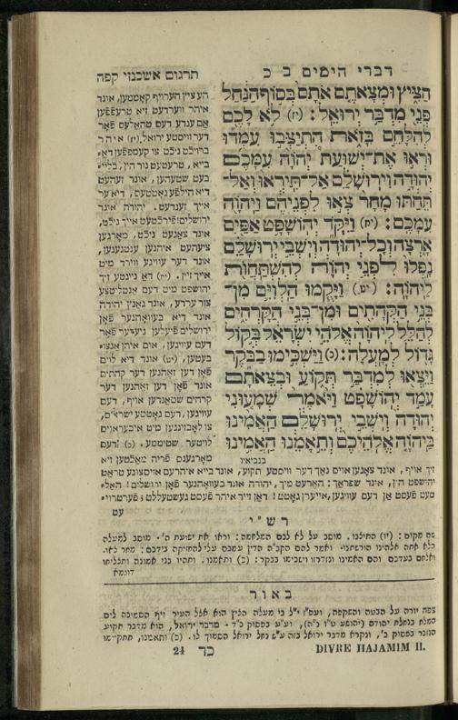 19 (1836) Sefer Divre ha-yamim 1 / meturgam me-ḥadash u-mevoʾar me-iti Yosef Ṿayse, ṿe-nilṿah elaṿ Perush Rashi ṿe-haʿtaḳat u-veʾur kol milot be-laʿaz me-et ha-madpis Mosheh ha-Leṿi Landaʾ19 (1836) ספר דברי הימים א / מתורגם מחדש ומבואר מאתי יוסף ווייסע, ונלוה אליו פירוש רש''י והעתקת ובאור כל מלות בלע''ז מאת המדפיס משה הלוי לנדא