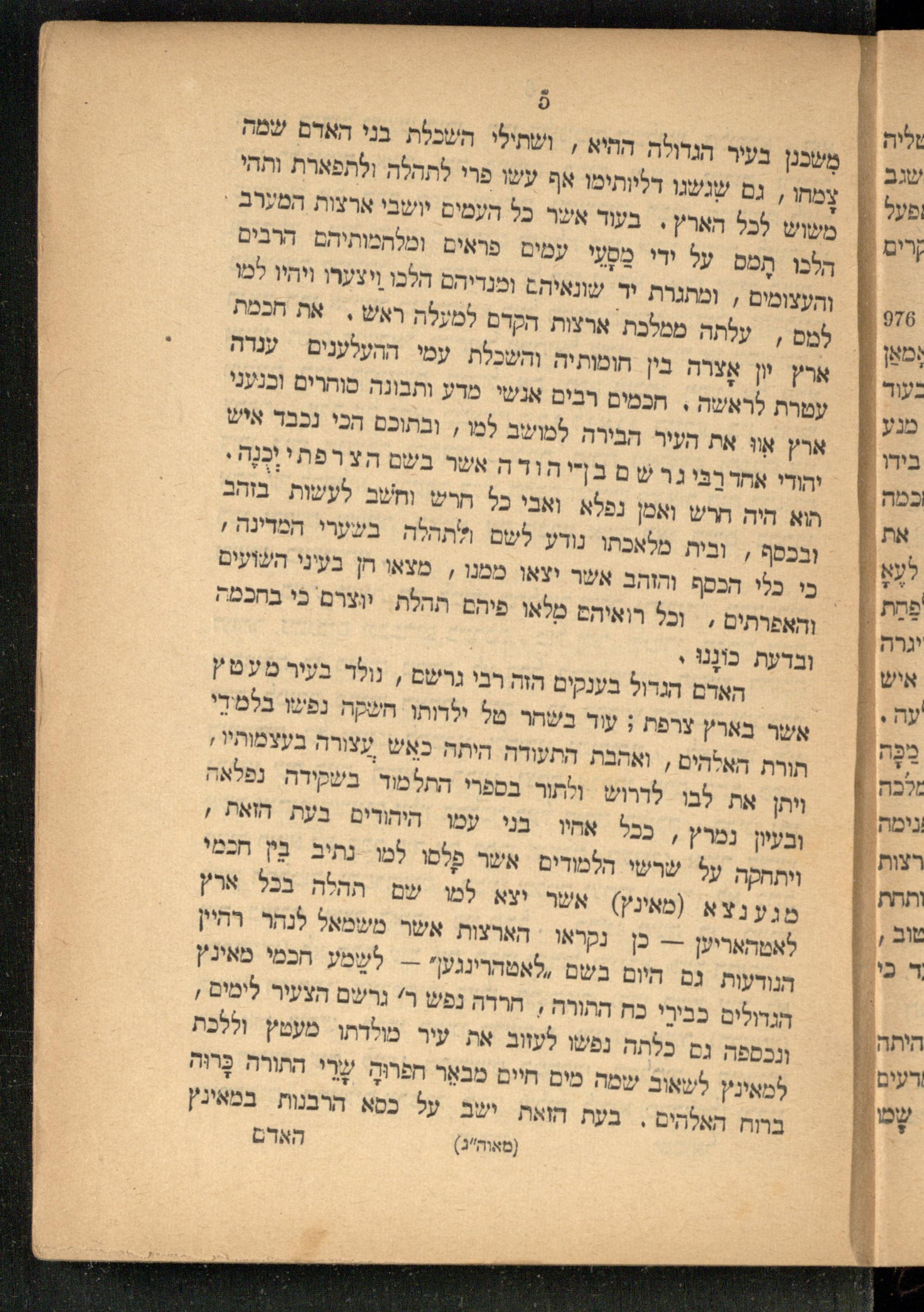 Sefer Meʾor ha-golah : hu sipur gadol ṿe-nikhbad meʾod, bo yesupar le-dor mi-kol ha-matsaʾot et rosh ḥakhme Yiśraʾel ... hu Rabenu Gershom Meʾor ha-golah ... sipur ... zeh bi-śefat Ashkenaz yesodato, b.m.k.h.ʿe. "Izraelit" ha-yotseʾ le-or ʿal yede [ha-meḥaber] ha-rav ha-gadol be-Yiśraʾel ... M. Meʾir d.r. Lehman h.y.ṿ. rav le-ʿedat Yeshurun be-Maints ... / ṿe-neʿetaḳ li-śefat ʿEver ... ʿa.y. Yosef Leib Peṭoḥoṿsḳiספר מאור הגולה : הוא ספור גדול ונכבד מאוד, בו יספר לדור מכל המצאות את ראש חכמי ישראל ... הוא רבנו גרשום מאור הגולה ... ספור ... זה בשפת אשכנז יסודתו, במכה״ע "איזראעליט" היוצא לאור על ידי [המחבר] הרב הגדול בישראל ... מ׳ מאיר ד״ר לעהמאן הי״ו רב לעדת ישרון במאינץ ... / ונעתק לשפת עבר ע״י יוסף ליב פעטאחאווסקי