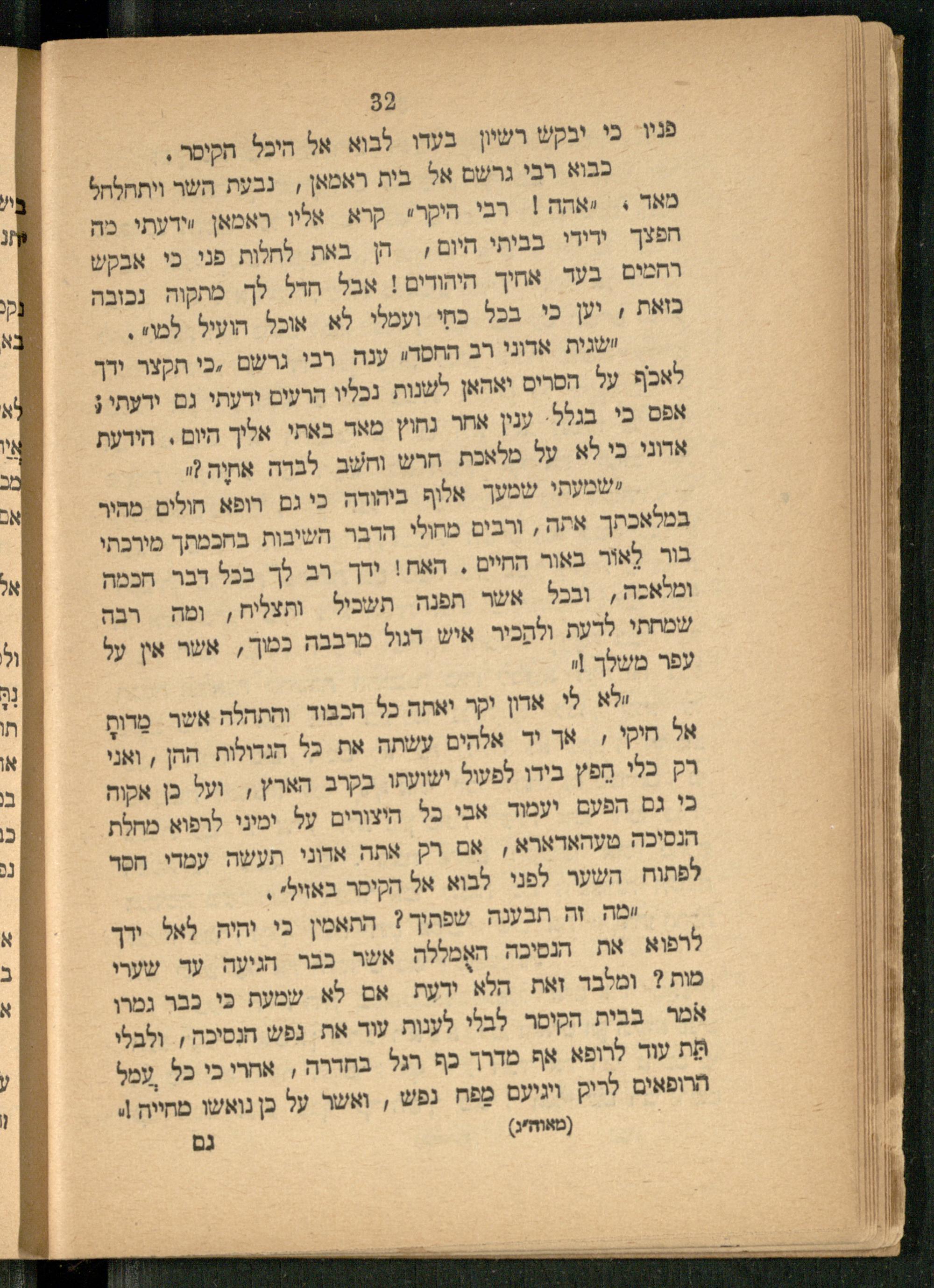 Sefer Meʾor ha-golah : hu sipur gadol ṿe-nikhbad meʾod, bo yesupar le-dor mi-kol ha-matsaʾot et rosh ḥakhme Yiśraʾel ... hu Rabenu Gershom Meʾor ha-golah ... sipur ... zeh bi-śefat Ashkenaz yesodato, b.m.k.h.ʿe. "Izraelit" ha-yotseʾ le-or ʿal yede [ha-meḥaber] ha-rav ha-gadol be-Yiśraʾel ... M. Meʾir d.r. Lehman h.y.ṿ. rav le-ʿedat Yeshurun be-Maints ... / ṿe-neʿetaḳ li-śefat ʿEver ... ʿa.y. Yosef Leib Peṭoḥoṿsḳiספר מאור הגולה : הוא ספור גדול ונכבד מאוד, בו יספר לדור מכל המצאות את ראש חכמי ישראל ... הוא רבנו גרשום מאור הגולה ... ספור ... זה בשפת אשכנז יסודתו, במכה״ע "איזראעליט" היוצא לאור על ידי [המחבר] הרב הגדול בישראל ... מ׳ מאיר ד״ר לעהמאן הי״ו רב לעדת ישרון במאינץ ... / ונעתק לשפת עבר ע״י יוסף ליב פעטאחאווסקי