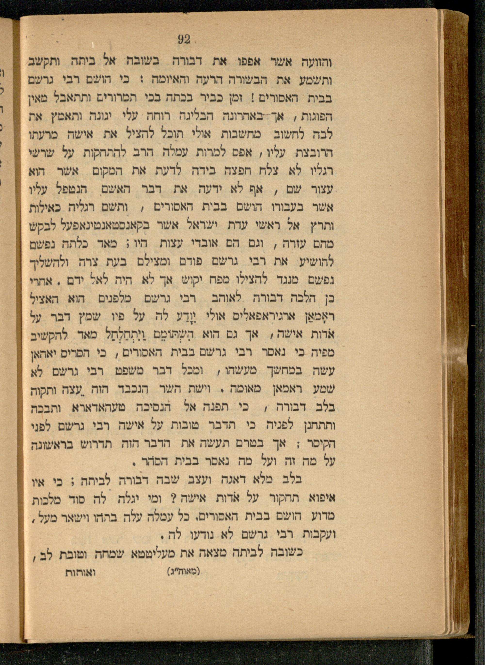 Sefer Meʾor ha-golah : hu sipur gadol ṿe-nikhbad meʾod, bo yesupar le-dor mi-kol ha-matsaʾot et rosh ḥakhme Yiśraʾel ... hu Rabenu Gershom Meʾor ha-golah ... sipur ... zeh bi-śefat Ashkenaz yesodato, b.m.k.h.ʿe. "Izraelit" ha-yotseʾ le-or ʿal yede [ha-meḥaber] ha-rav ha-gadol be-Yiśraʾel ... M. Meʾir d.r. Lehman h.y.ṿ. rav le-ʿedat Yeshurun be-Maints ... / ṿe-neʿetaḳ li-śefat ʿEver ... ʿa.y. Yosef Leib Peṭoḥoṿsḳiספר מאור הגולה : הוא ספור גדול ונכבד מאוד, בו יספר לדור מכל המצאות את ראש חכמי ישראל ... הוא רבנו גרשום מאור הגולה ... ספור ... זה בשפת אשכנז יסודתו, במכה״ע "איזראעליט" היוצא לאור על ידי [המחבר] הרב הגדול בישראל ... מ׳ מאיר ד״ר לעהמאן הי״ו רב לעדת ישרון במאינץ ... / ונעתק לשפת עבר ע״י יוסף ליב פעטאחאווסקי