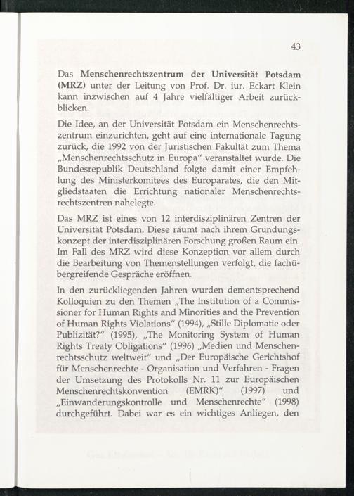 "Menschenrechte für alle" : 50 Jahre Allgemeine Erklärung der Menschenrechte : Begleitheft zur Ausstellung des Menschenrechtszentrums der Universität Potsdam in Zusammenarbeit mit dem Studiengang Kunst der Universität Potsdam / unter der Schirmherrschaft des Ministerpräsidenten des Landes Brandenburg Herrn Dr. Manfred Stolpe