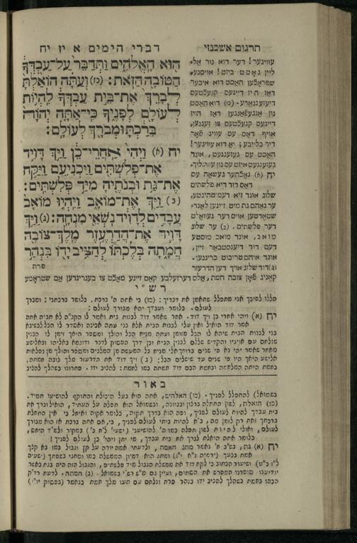 19 (1836) Sefer Divre ha-yamim 1 / meturgam me-ḥadash u-mevoʾar me-iti Yosef Ṿayse, ṿe-nilṿah elaṿ Perush Rashi ṿe-haʿtaḳat u-veʾur kol milot be-laʿaz me-et ha-madpis Mosheh ha-Leṿi Landaʾ19 (1836) ספר דברי הימים א / מתורגם מחדש ומבואר מאתי יוסף ווייסע, ונלוה אליו פירוש רש''י והעתקת ובאור כל מלות בלע''ז מאת המדפיס משה הלוי לנדא