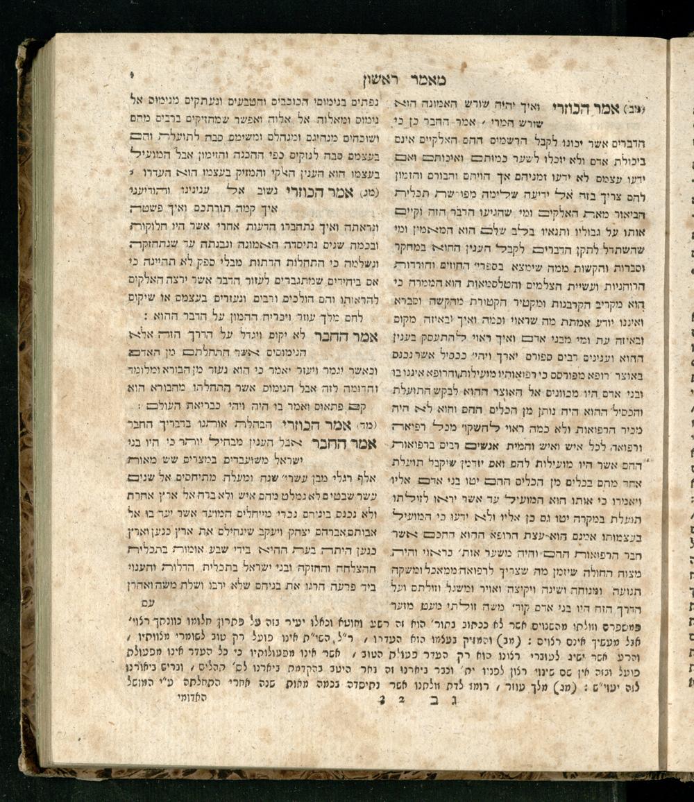 Sefer ha-Kuzari : ha-kolel sipur ha-ṿikuaḥ she-hayah ben ha-melekh shel ʿam medinat Kuzari u-ven he-ḥaver ... / heʿetiḳo he-ḥakham R. Yehudah b.R. Shaʾul ha-Leṿi mi-leshon ʿArav ; meforash ... be-veʾur ḳalספר הכוזרי : הכולל סיפור הוויכוח שהיה בין המלך של עם מדינת כוזרי ובין החבר ... / העתיקו החכם ר׳ יהודה בר׳ שאול הלוי מלשון ערב ; מפורש ... בביאור קל