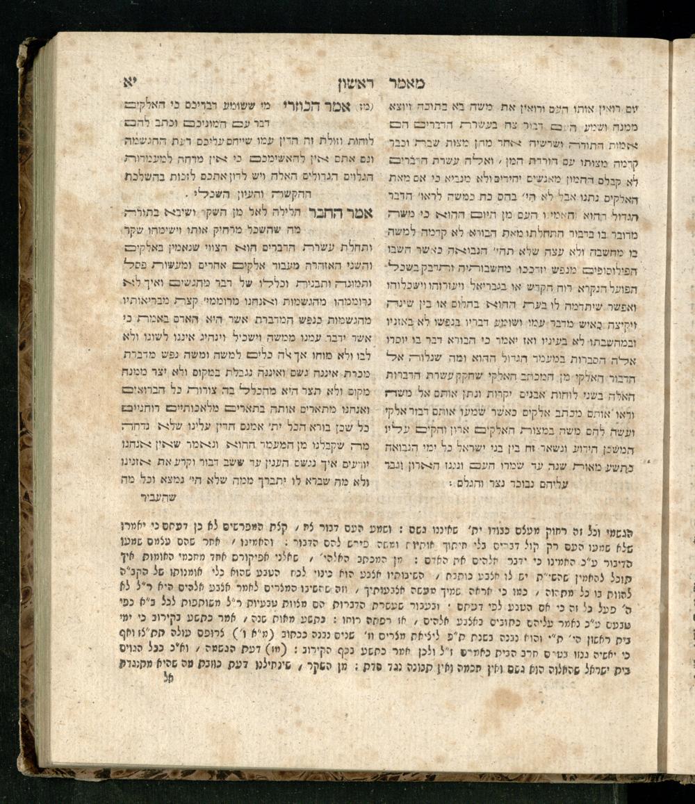 Sefer ha-Kuzari : ha-kolel sipur ha-ṿikuaḥ she-hayah ben ha-melekh shel ʿam medinat Kuzari u-ven he-ḥaver ... / heʿetiḳo he-ḥakham R. Yehudah b.R. Shaʾul ha-Leṿi mi-leshon ʿArav ; meforash ... be-veʾur ḳalספר הכוזרי : הכולל סיפור הוויכוח שהיה בין המלך של עם מדינת כוזרי ובין החבר ... / העתיקו החכם ר׳ יהודה בר׳ שאול הלוי מלשון ערב ; מפורש ... בביאור קל