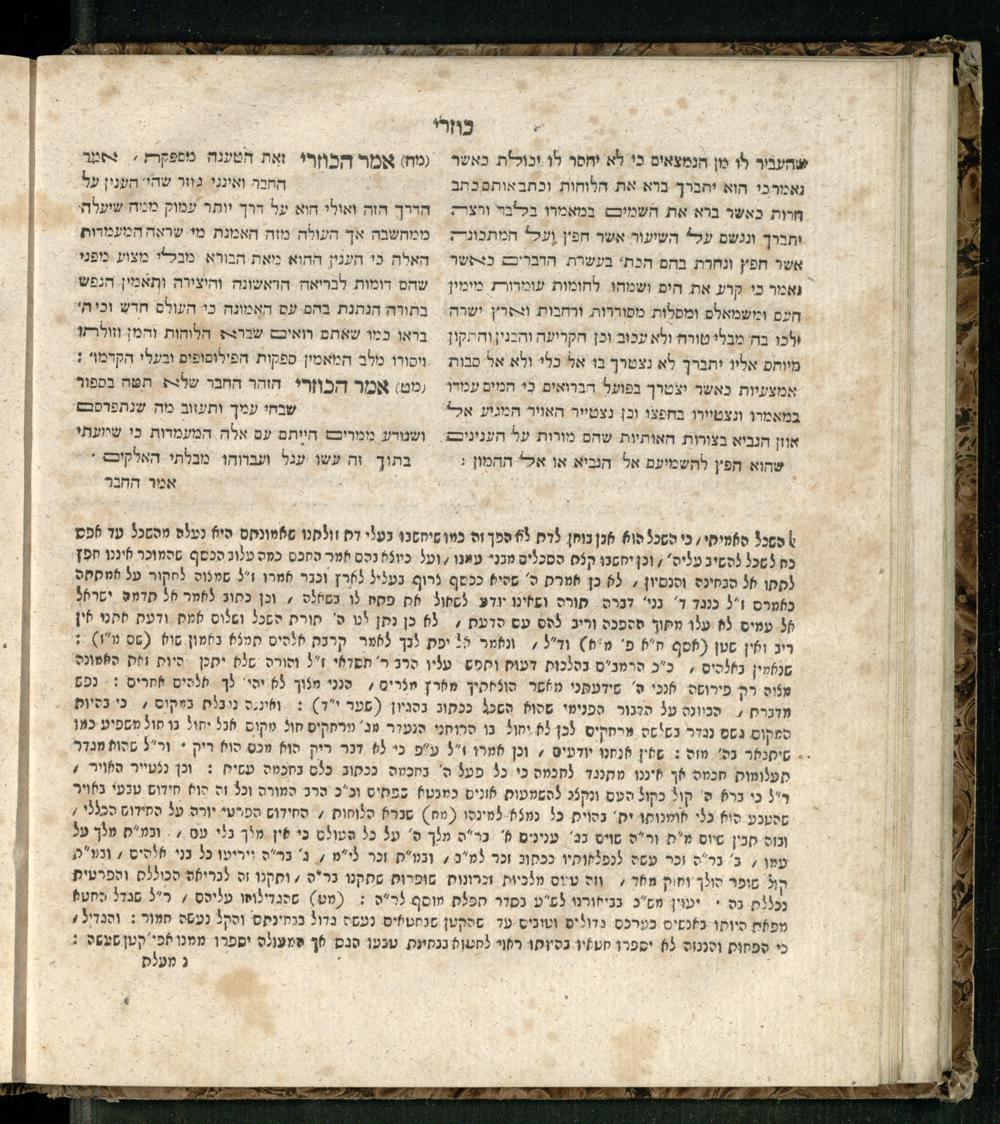 Sefer ha-Kuzari : ha-kolel sipur ha-ṿikuaḥ she-hayah ben ha-melekh shel ʿam medinat Kuzari u-ven he-ḥaver ... / heʿetiḳo he-ḥakham R. Yehudah b.R. Shaʾul ha-Leṿi mi-leshon ʿArav ; meforash ... be-veʾur ḳalספר הכוזרי : הכולל סיפור הוויכוח שהיה בין המלך של עם מדינת כוזרי ובין החבר ... / העתיקו החכם ר׳ יהודה בר׳ שאול הלוי מלשון ערב ; מפורש ... בביאור קל