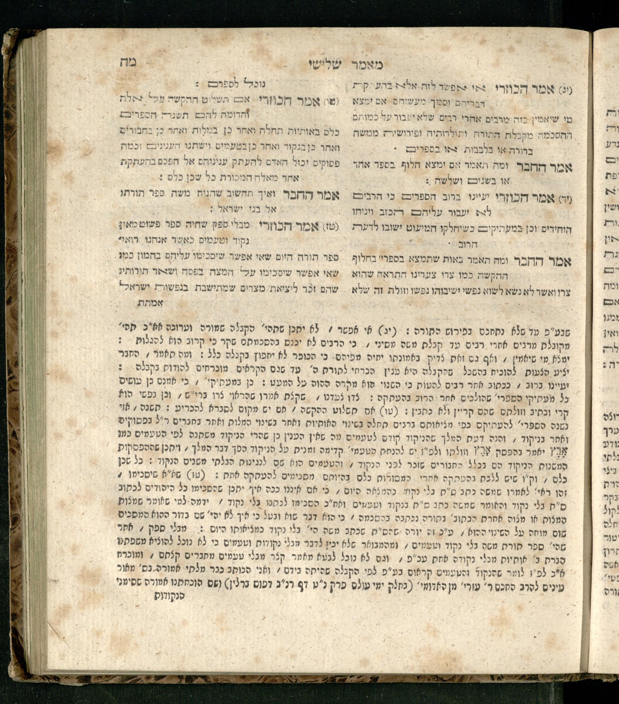 Sefer ha-Kuzari : ha-kolel sipur ha-ṿikuaḥ she-hayah ben ha-melekh shel ʿam medinat Kuzari u-ven he-ḥaver ... / heʿetiḳo he-ḥakham R. Yehudah b.R. Shaʾul ha-Leṿi mi-leshon ʿArav ; meforash ... be-veʾur ḳalספר הכוזרי : הכולל סיפור הוויכוח שהיה בין המלך של עם מדינת כוזרי ובין החבר ... / העתיקו החכם ר׳ יהודה בר׳ שאול הלוי מלשון ערב ; מפורש ... בביאור קל