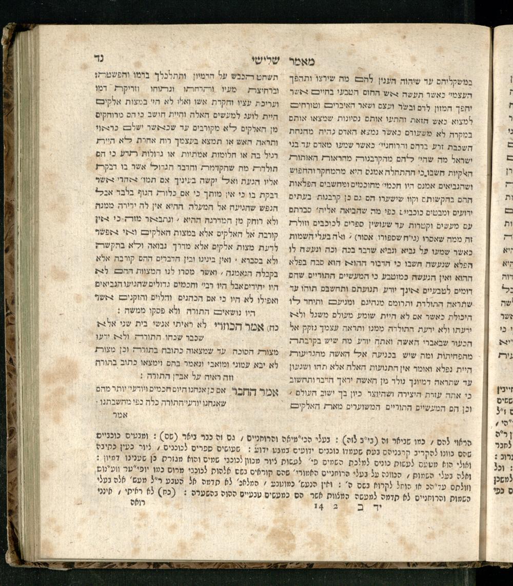 Sefer ha-Kuzari : ha-kolel sipur ha-ṿikuaḥ she-hayah ben ha-melekh shel ʿam medinat Kuzari u-ven he-ḥaver ... / heʿetiḳo he-ḥakham R. Yehudah b.R. Shaʾul ha-Leṿi mi-leshon ʿArav ; meforash ... be-veʾur ḳalספר הכוזרי : הכולל סיפור הוויכוח שהיה בין המלך של עם מדינת כוזרי ובין החבר ... / העתיקו החכם ר׳ יהודה בר׳ שאול הלוי מלשון ערב ; מפורש ... בביאור קל