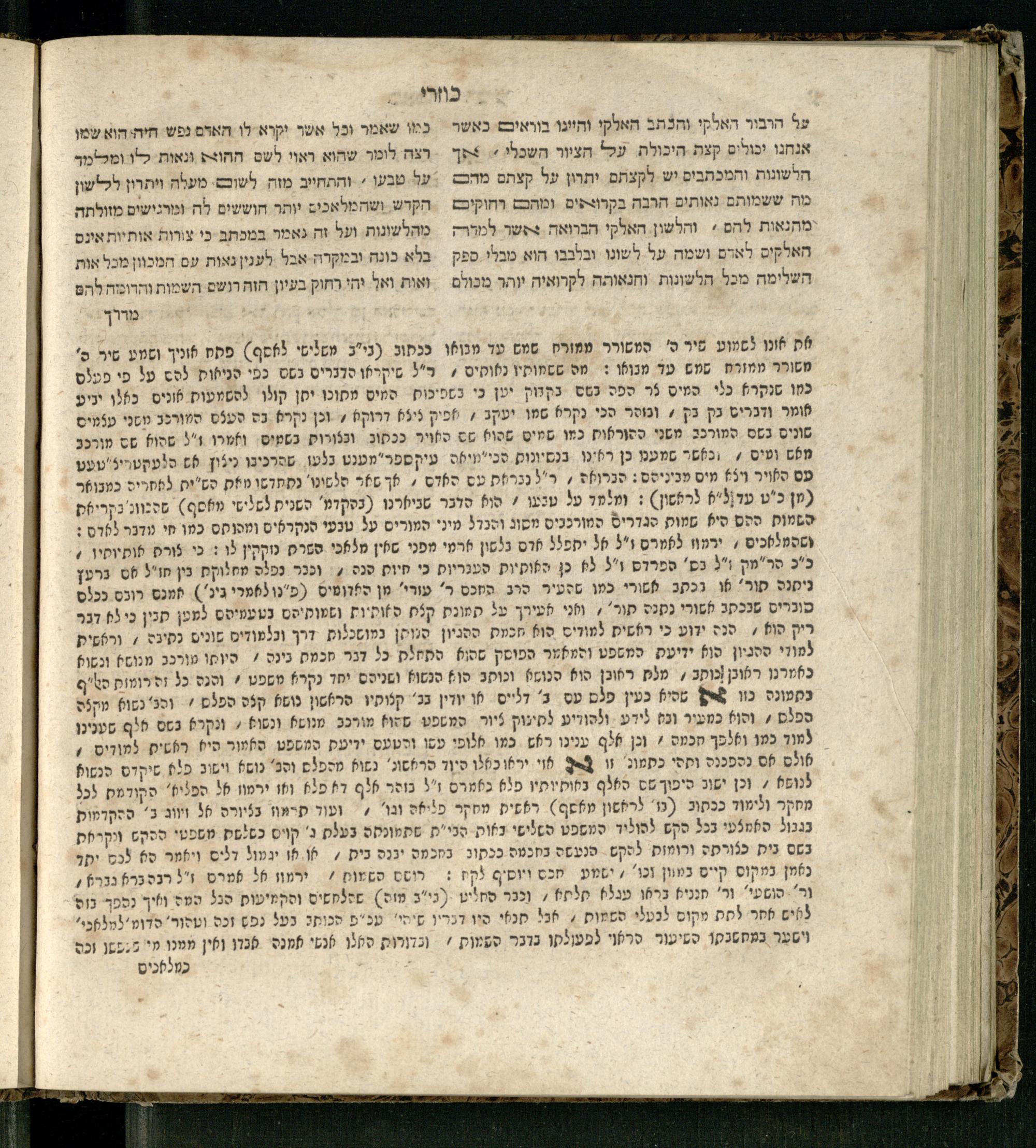 Sefer ha-Kuzari : ha-kolel sipur ha-ṿikuaḥ she-hayah ben ha-melekh shel ʿam medinat Kuzari u-ven he-ḥaver ... / heʿetiḳo he-ḥakham R. Yehudah b.R. Shaʾul ha-Leṿi mi-leshon ʿArav ; meforash ... be-veʾur ḳalספר הכוזרי : הכולל סיפור הוויכוח שהיה בין המלך של עם מדינת כוזרי ובין החבר ... / העתיקו החכם ר׳ יהודה בר׳ שאול הלוי מלשון ערב ; מפורש ... בביאור קל