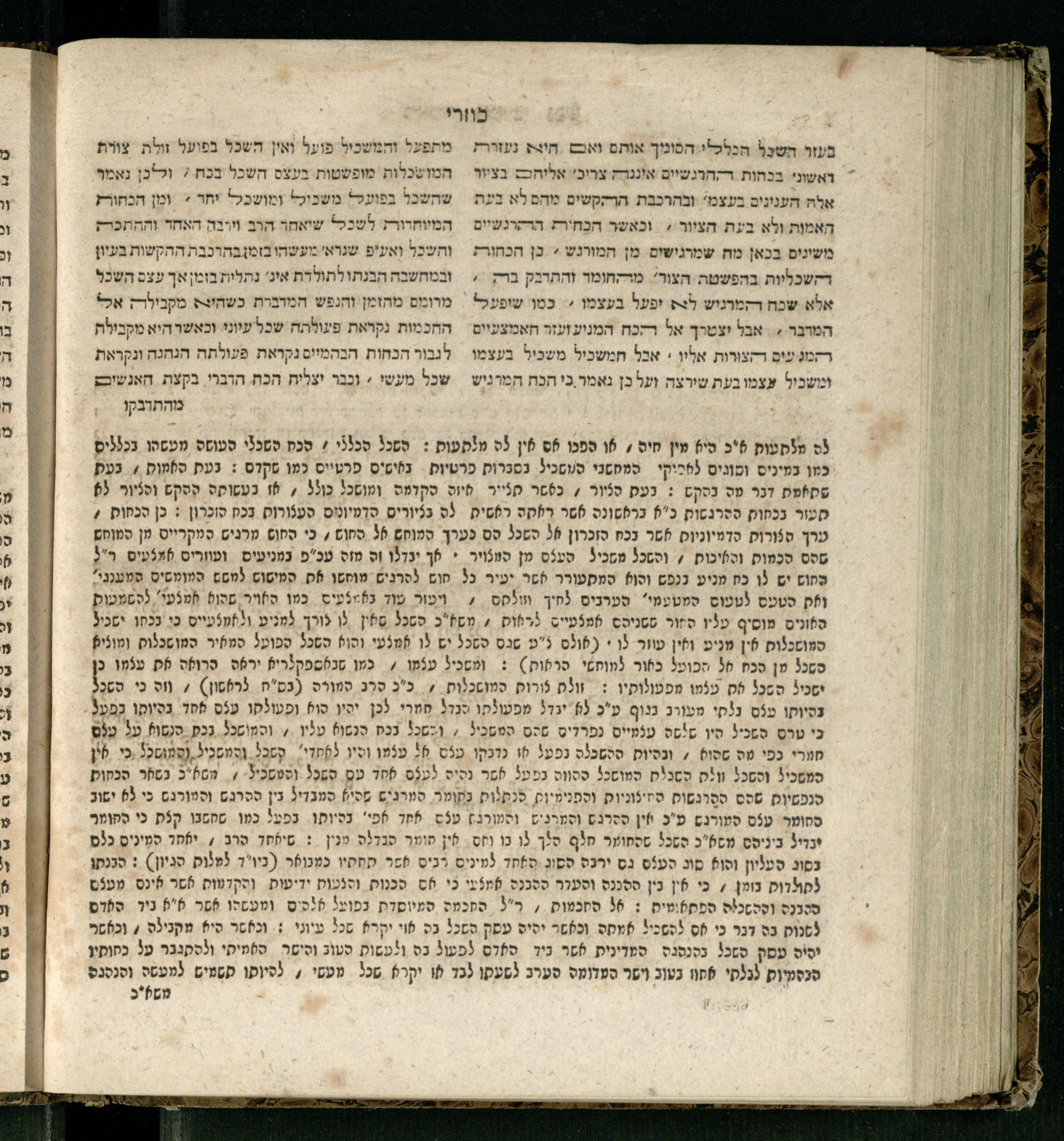 Sefer ha-Kuzari : ha-kolel sipur ha-ṿikuaḥ she-hayah ben ha-melekh shel ʿam medinat Kuzari u-ven he-ḥaver ... / heʿetiḳo he-ḥakham R. Yehudah b.R. Shaʾul ha-Leṿi mi-leshon ʿArav ; meforash ... be-veʾur ḳalספר הכוזרי : הכולל סיפור הוויכוח שהיה בין המלך של עם מדינת כוזרי ובין החבר ... / העתיקו החכם ר׳ יהודה בר׳ שאול הלוי מלשון ערב ; מפורש ... בביאור קל