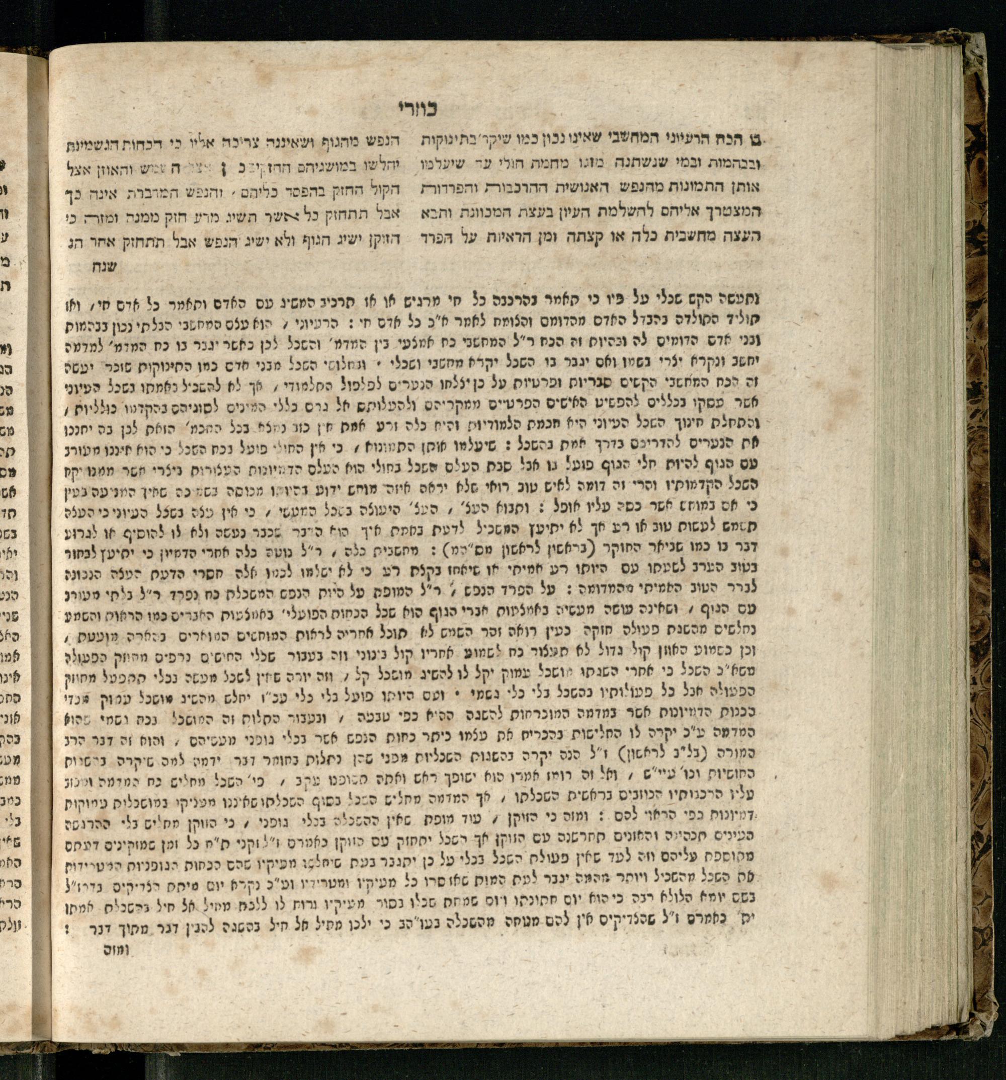 Sefer ha-Kuzari : ha-kolel sipur ha-ṿikuaḥ she-hayah ben ha-melekh shel ʿam medinat Kuzari u-ven he-ḥaver ... / heʿetiḳo he-ḥakham R. Yehudah b.R. Shaʾul ha-Leṿi mi-leshon ʿArav ; meforash ... be-veʾur ḳalספר הכוזרי : הכולל סיפור הוויכוח שהיה בין המלך של עם מדינת כוזרי ובין החבר ... / העתיקו החכם ר׳ יהודה בר׳ שאול הלוי מלשון ערב ; מפורש ... בביאור קל