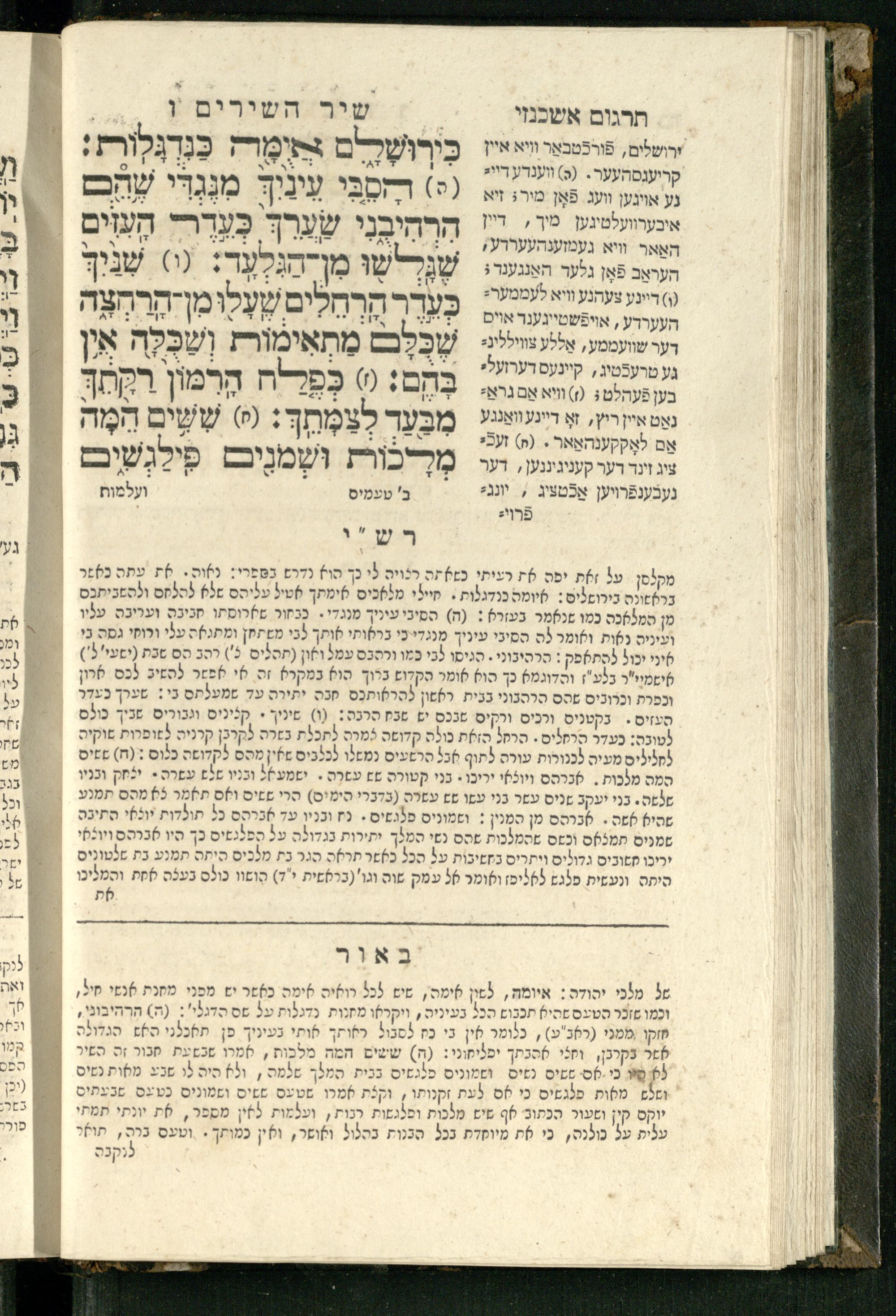 20 (1833) Ḥamesh megilot : ʿim Perush Rashi targum Ashkenazi u-veʾur : hugah bi-sheḳidah rabah u-ve-ʿiyun gadol ṿe-nosaf mavo ha-sheni ʿal megilat Rut, Ekhah, Ḳohelet, ṿe-Ester ; ṿe-ha-meʿamer ʿal kol megilah u-megilah / me-et ha-ḥakham ha-medaḳdeḳ mo.h.r.R. Ṿolf Meʾir (moreh lashon ʿIvri be-vet ḥinukh ha-normali asher be-Prag) ; ṿa-ani ha-madpis hosafti gam targum u-veʾur ʿal milot be-laʿaz ha-nimtsaʾot be-Fe. Rashi z.l.20 (1833) חמש מגילות : עם פירוש רש״י תרגום אשכנזי ובאור : הוגה בשקידה רבה ובעיון גדול ונוסף מבוא השני על מגילת רות, איכה, קהלת, ואסתר; והמעמר על כל מגלה ומגלה / מאת החכם המדקדק מוהר״ר וואלף מאיר (מורה לשון עברי בבית חנוך הנארמאלי אשר בפראג) ; ואני המדפיס הוספתי גם תרגום ובאור על מלות בלע"ז הנמצאות בפירוש״י ז״ל